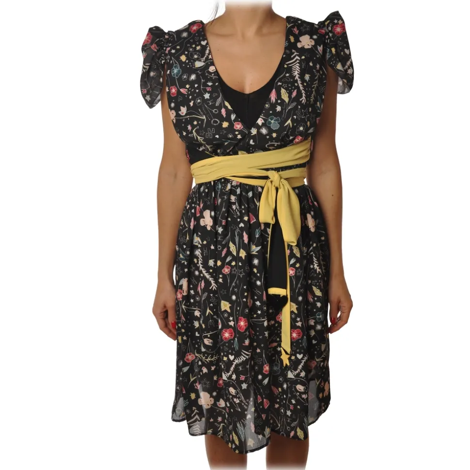 Elisabetta Franchi – Dress in Multicolor Pattern – Black – Dress – Made in Italy – Luxury Exclusive Collection