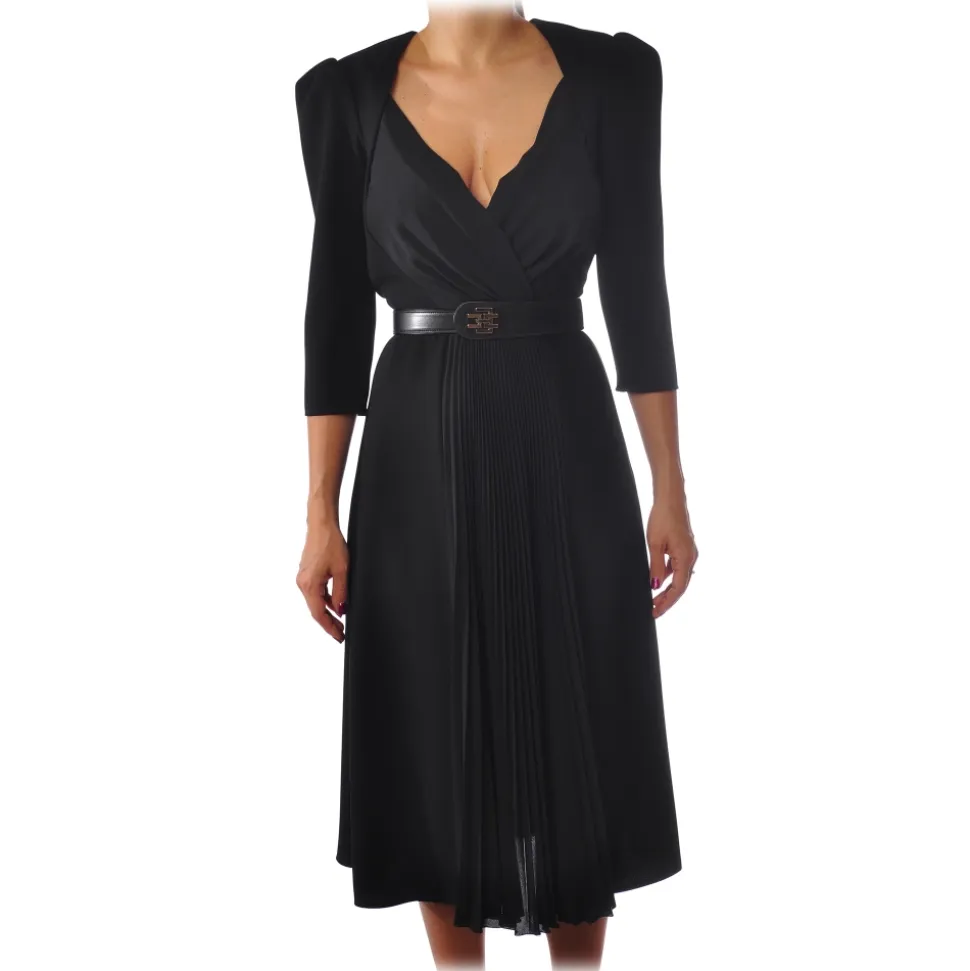 Elisabetta Franchi – Dress with Leather Belt – Black – Dress – Made in Italy – Luxury Exclusive Collection