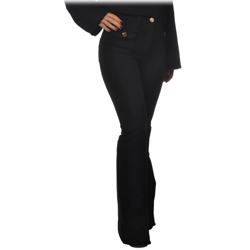 Elisabetta Franchi – Four Pocket Jeans Flared Leg – Black – Trousers – Made in Italy – Luxury Exclusive Collection