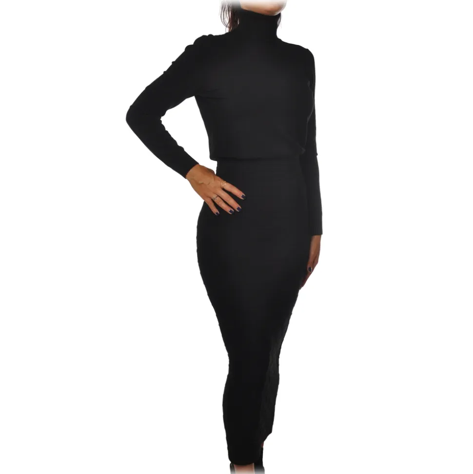 Elisabetta Franchi – High Neck Sheath Dress – Black – Dress – Made in Italy – Luxury Exclusive Collection