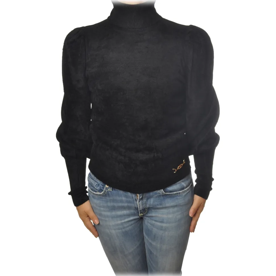 Elisabetta Franchi – High-Neck Sweater in Chenille – Black – Pullover – Made in Italy – Luxury Exclusive Collection