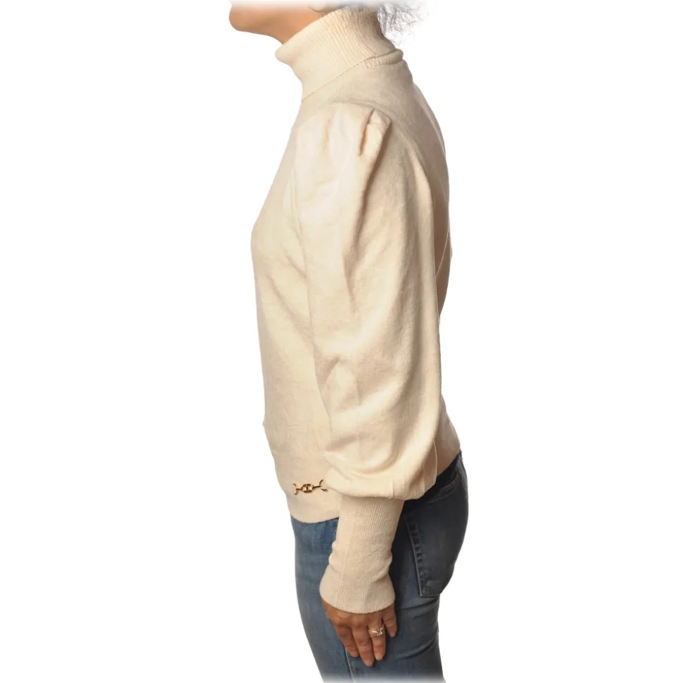 Elisabetta Franchi – High-Neck Sweater in Chenille – Ivory – Pullover – Made in Italy – Luxury Exclusive Collection