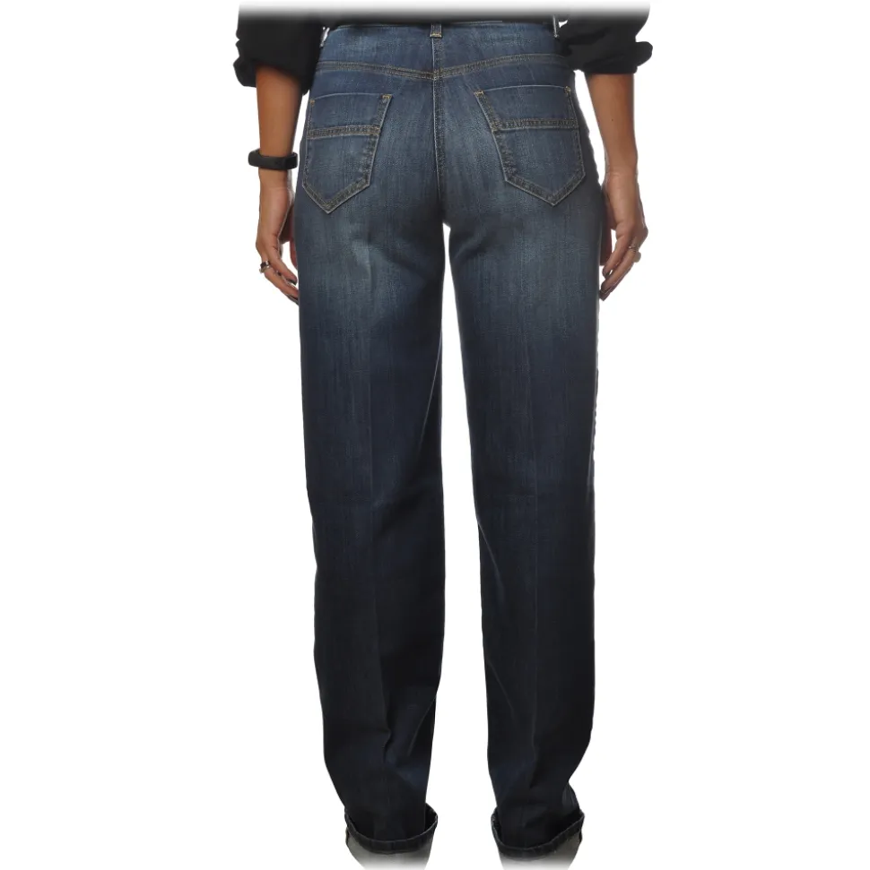 Elisabetta Franchi – High Waisted Jeans Wide Leg – Denim – Trousers – Made in Italy – Luxury Exclusive Collection