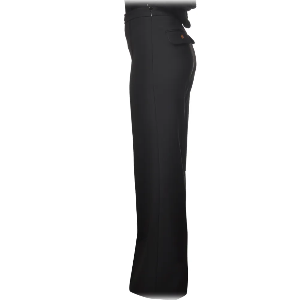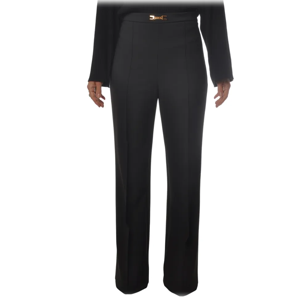 Elisabetta Franchi – High-Waisted Model with Zip – Black – Trousers – Made in Italy – Luxury Exclusive Collection