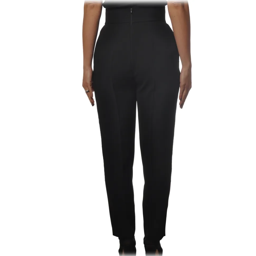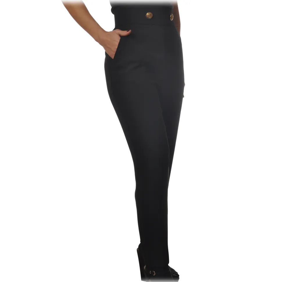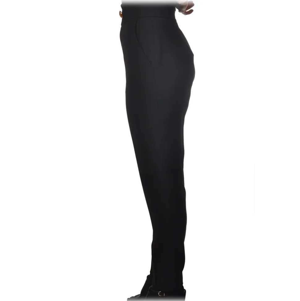 Elisabetta Franchi – High Waisted Straight Leg Trousers – Black – Trousers – Made in Italy – Luxury Exclusive Collection