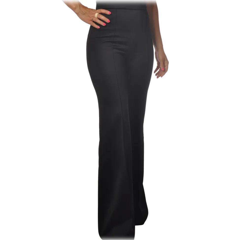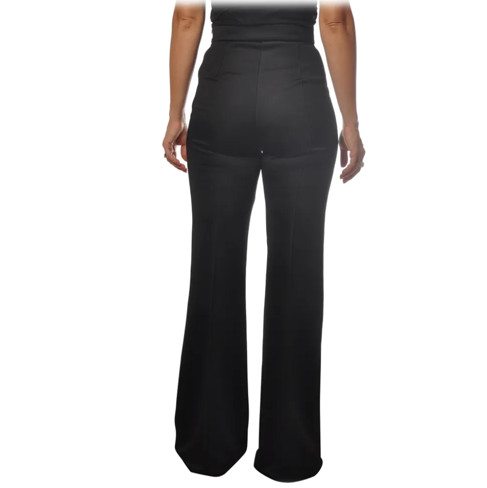 Elisabetta Franchi – High Waisted Wide Leg Trousers – Black – Trousers – Made in Italy – Luxury Exclusive Collection