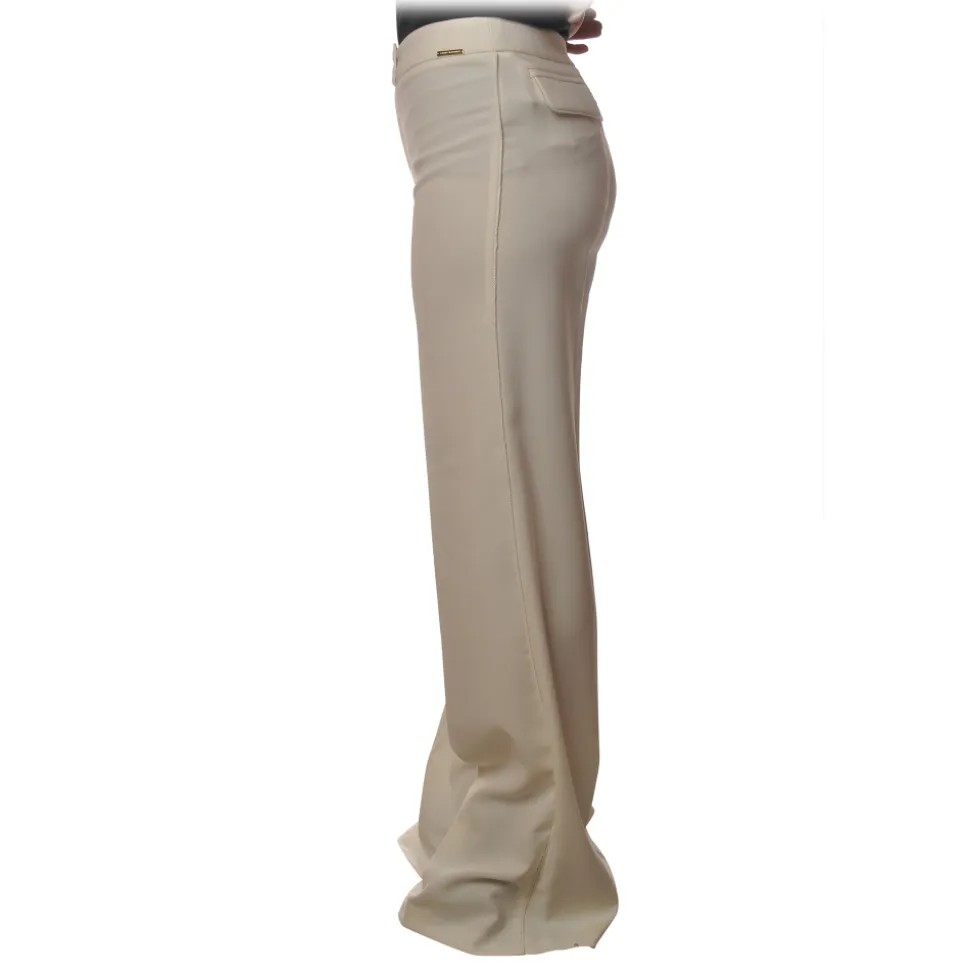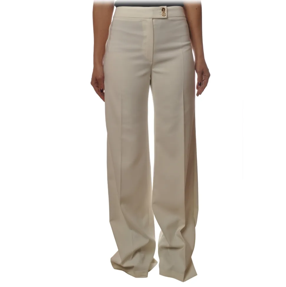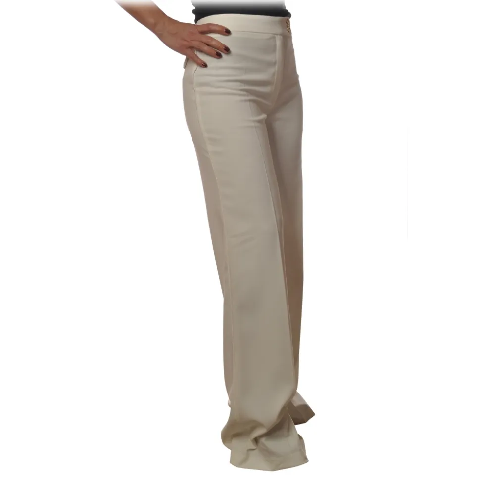 Elisabetta Franchi – High Waisted Wide Leg Trousers – White – Trousers – Made in Italy – Luxury Exclusive Collection
