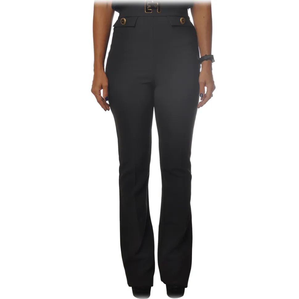 Elisabetta Franchi – High-Waisted High-Waisted with Flared Leg – Black – Trousers – Made in Italy – Luxury Exclusive Collection