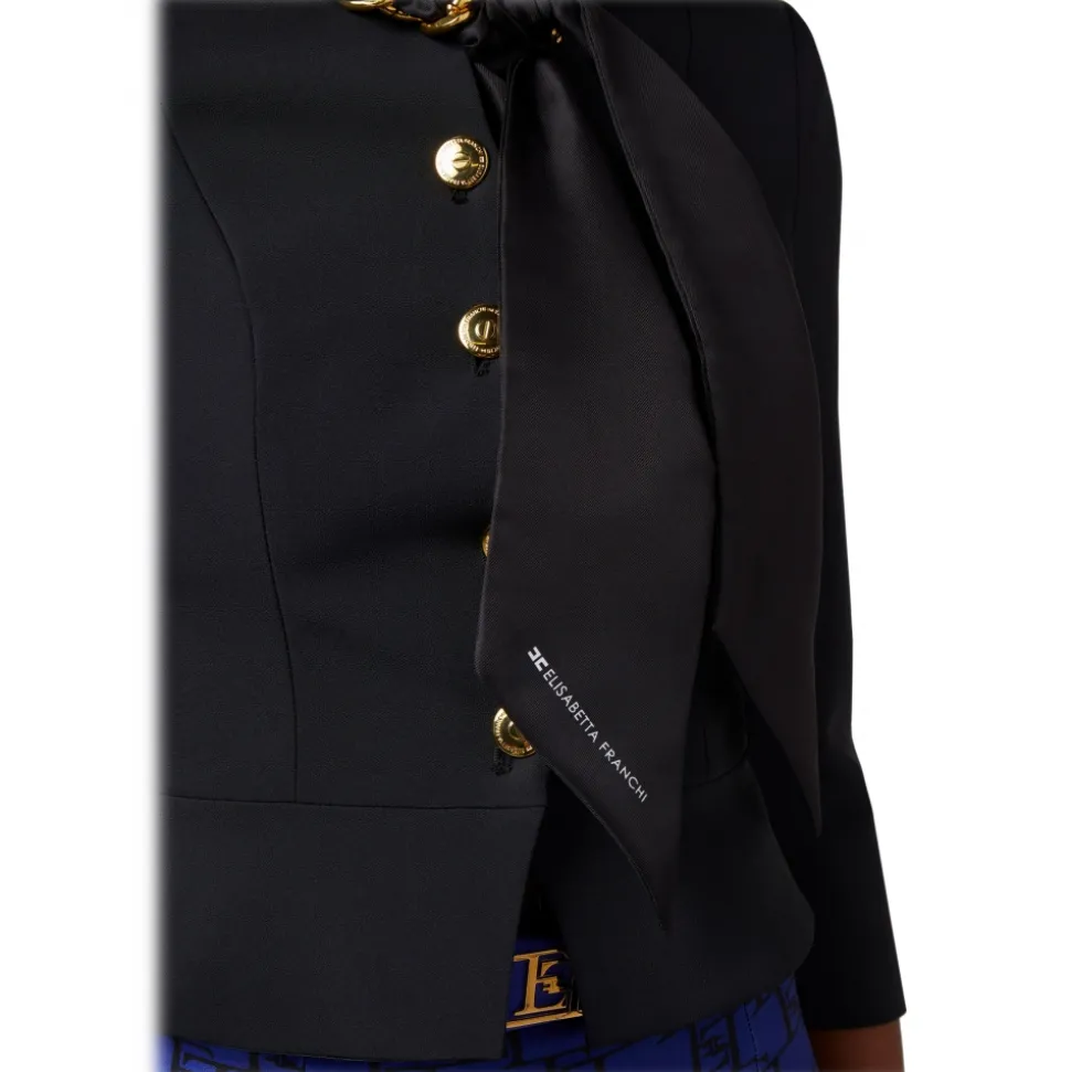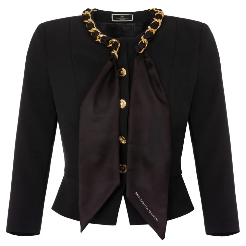 Elisabetta Franchi – Jacket with Chain Detail and Foulard – Black – Jacket – Made in Italy – Luxury Exclusive Collection