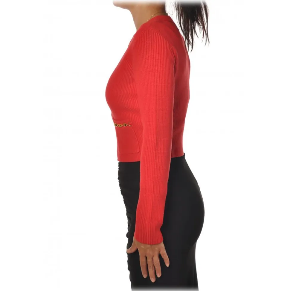 Elisabetta Franchi – Jacket with Pockets Finished with Metal – Red – Jacket – Made in Italy – Luxury Exclusive Collection