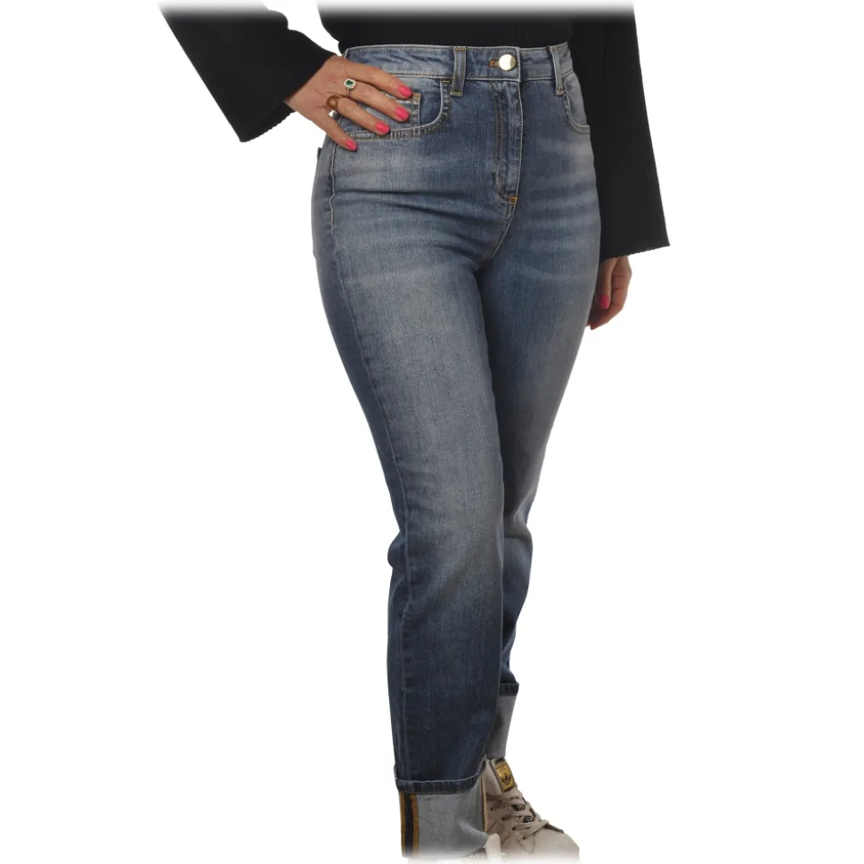 Elisabetta Franchi – Jeans with Cuffed Leg – Blue – Trousers – Made in Italy – Luxury Exclusive Collection