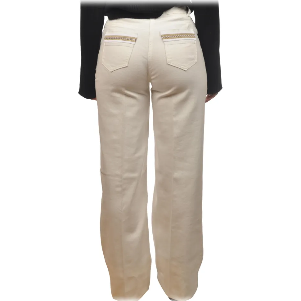 Elisabetta Franchi – Jeans with Trimmings Detail – White – Trousers – Made in Italy – Luxury Exclusive Collection