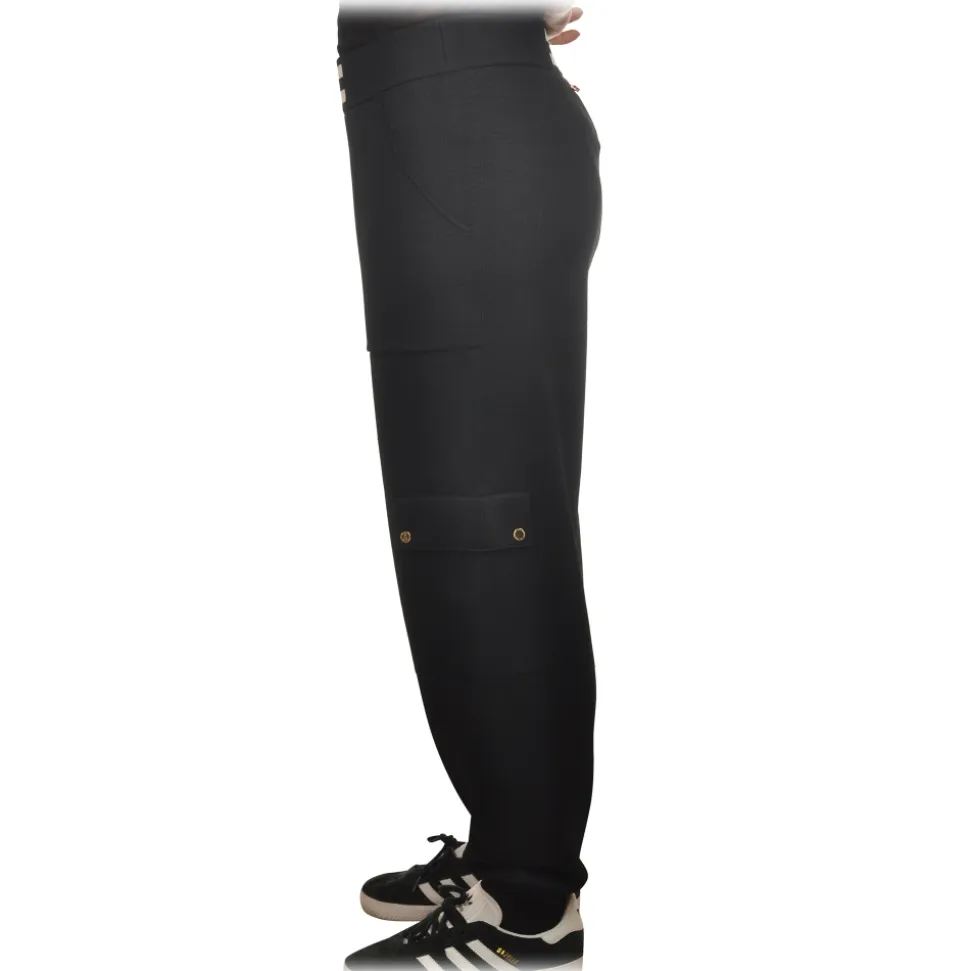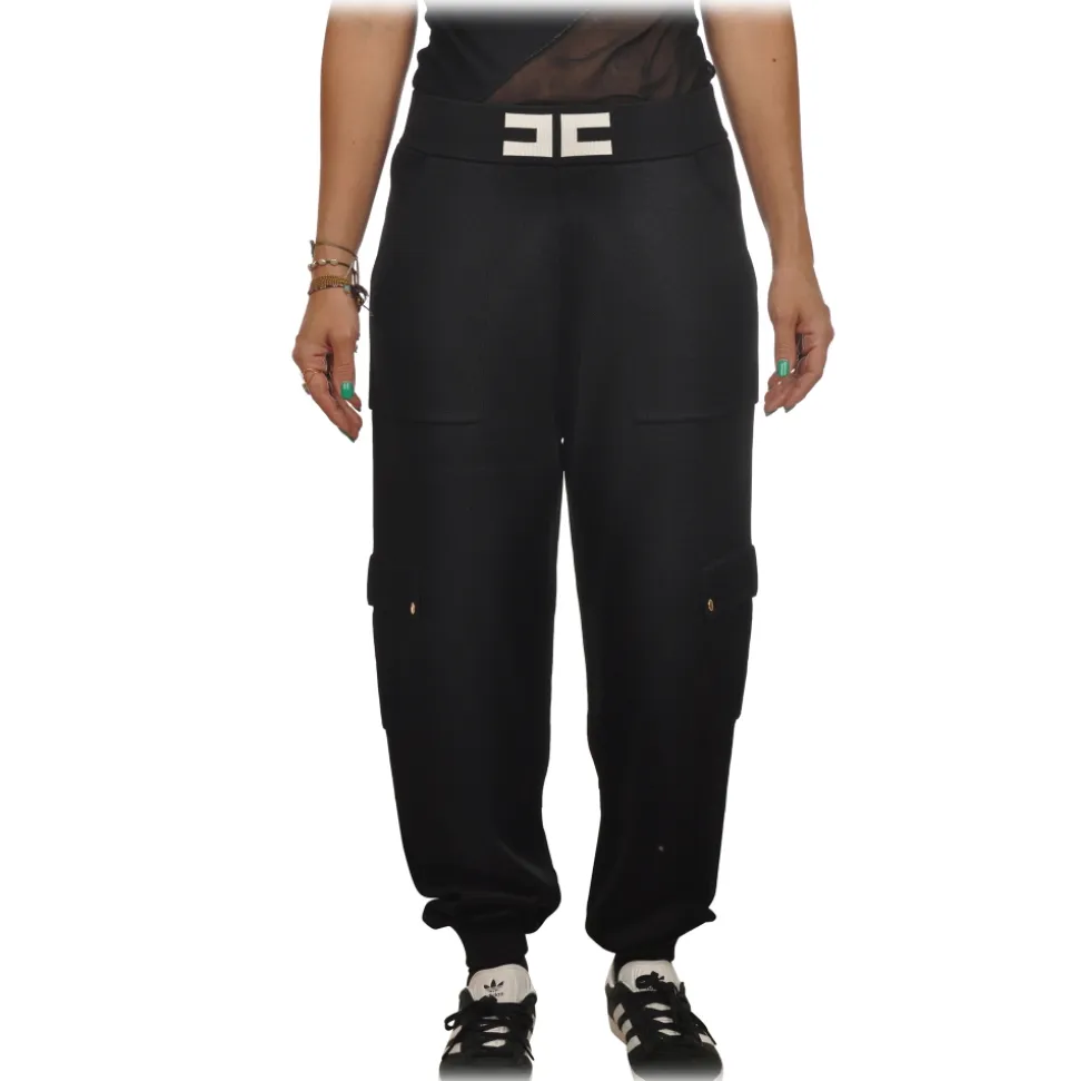 Elisabetta Franchi – Knit Yarn Trousers with Logo – Black – Trousers – Made in Italy – Luxury Exclusive Collection