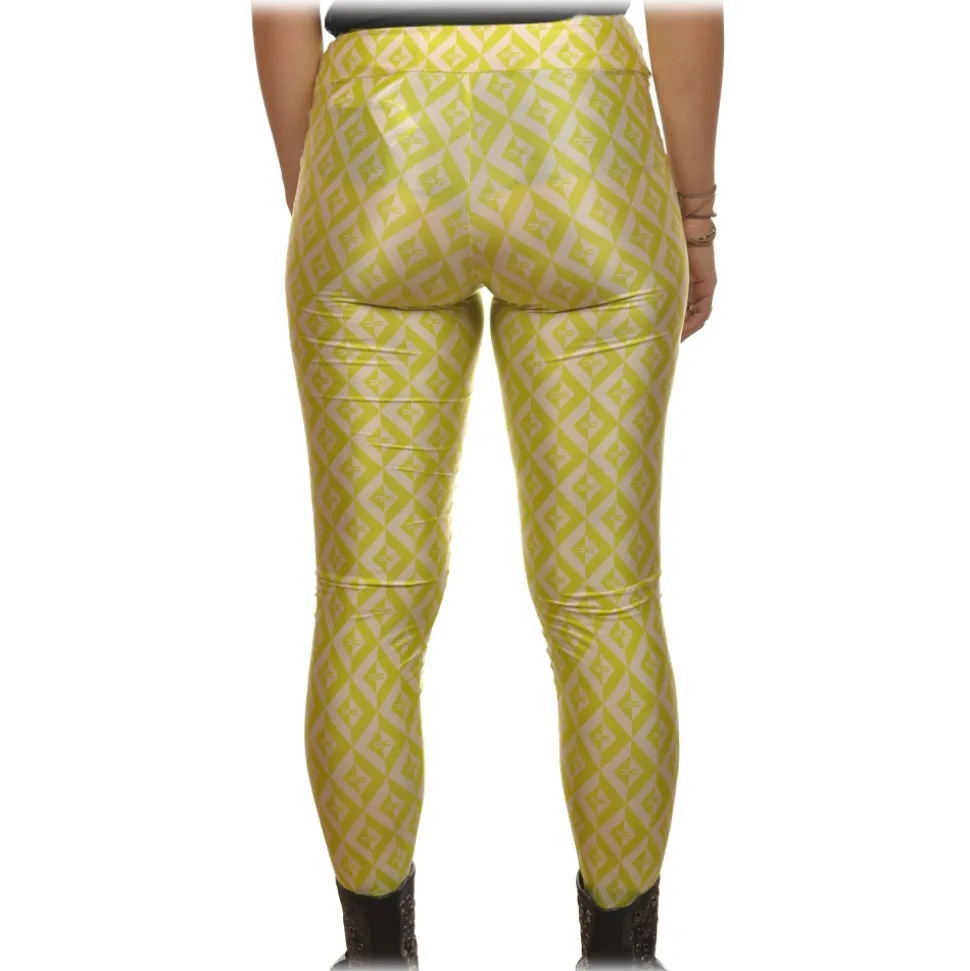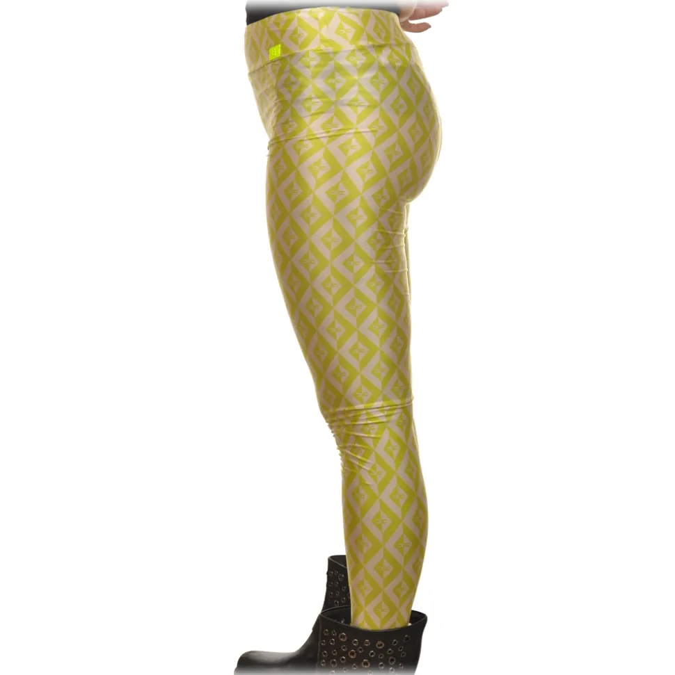 Elisabetta Franchi – Leggings with Logato Pattern – White/Yellow – Trousers – Made in Italy – Luxury Exclusive Collection