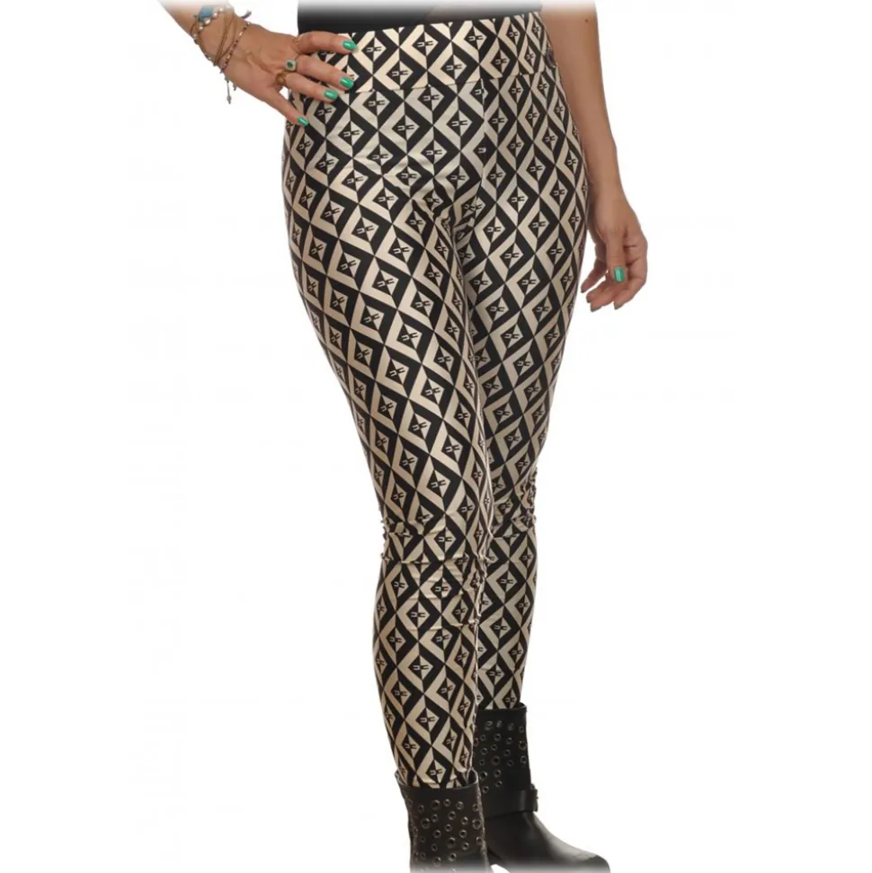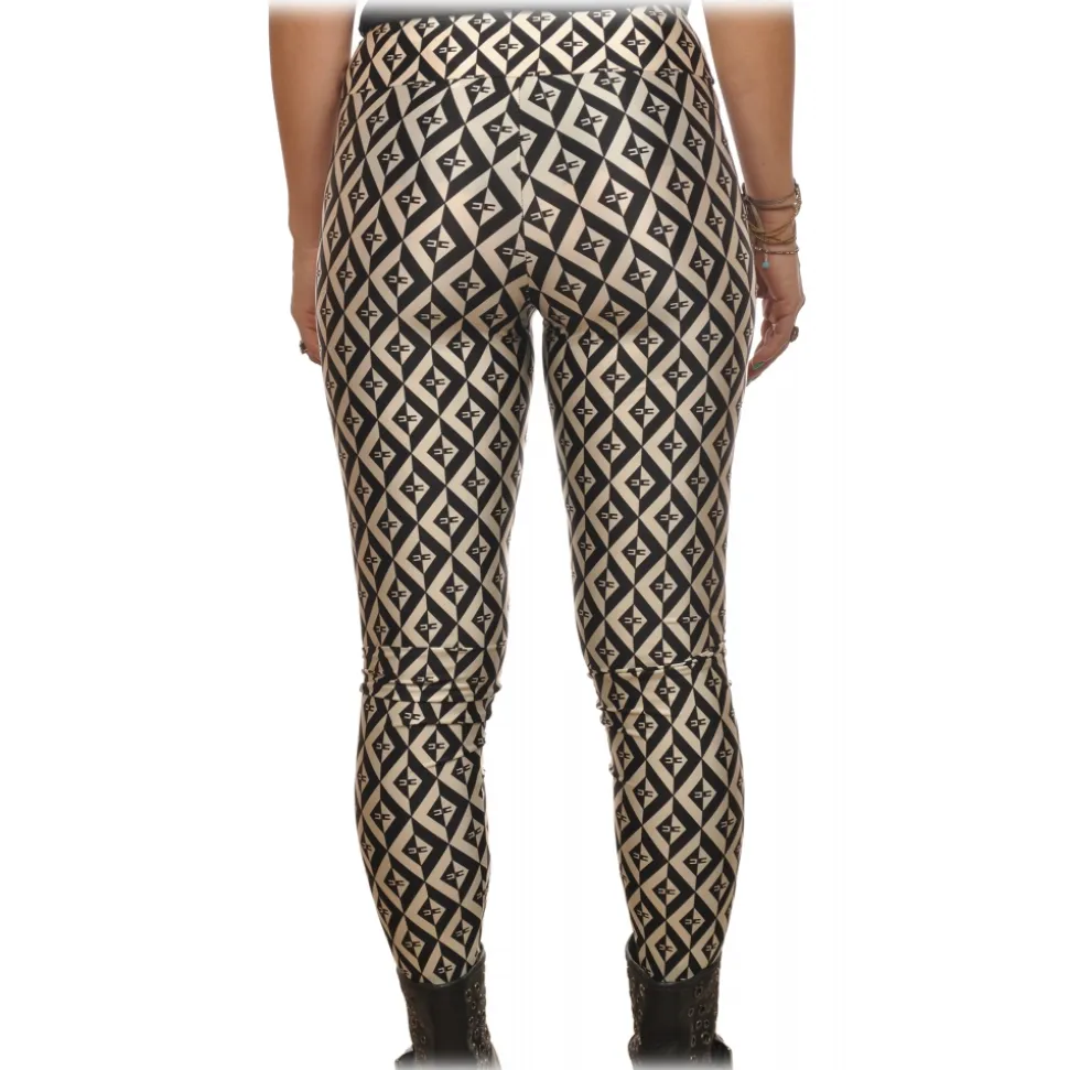 Elisabetta Franchi – Leggings with Logo Pattern – White/Black – Trousers – Made in Italy – Luxury Exclusive Collection