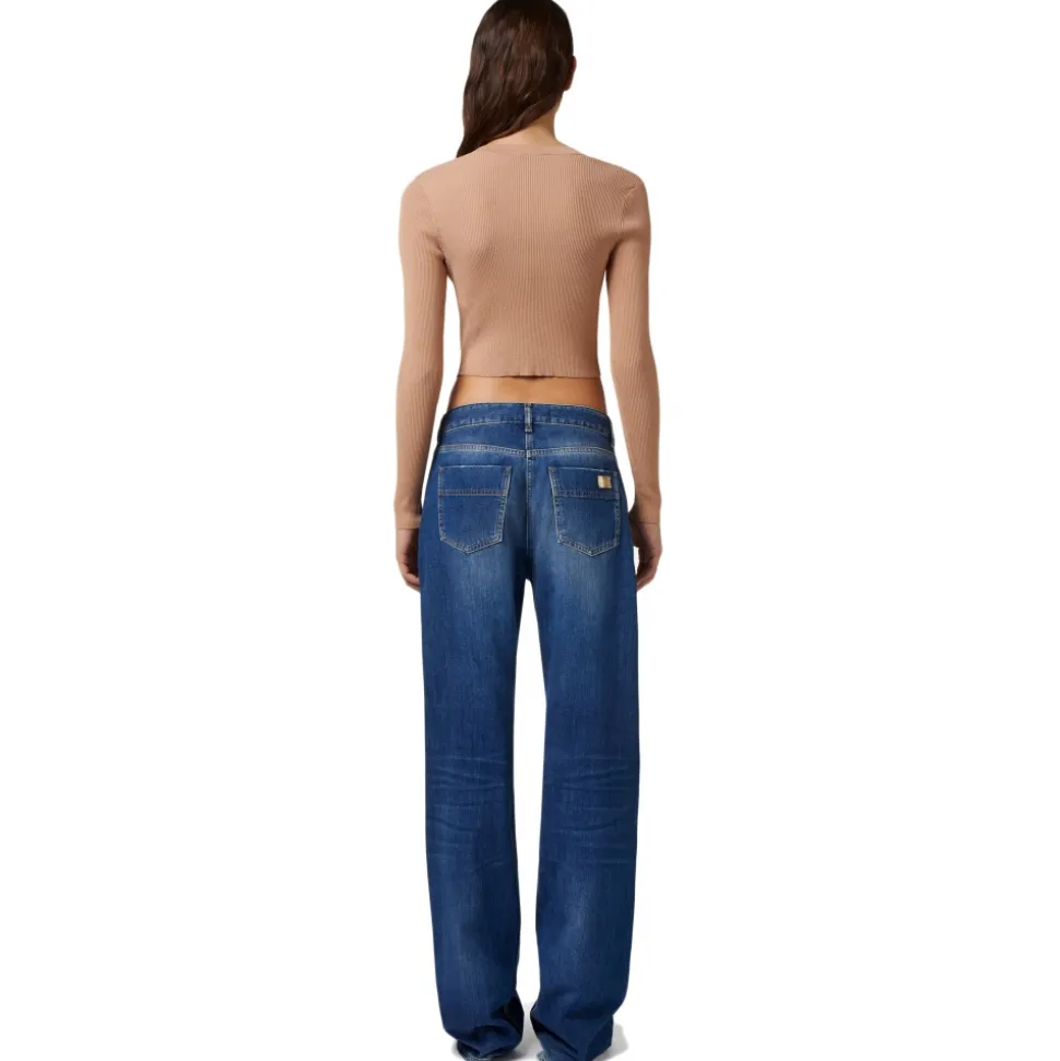 Elisabetta Franchi regular waist jeans with wide leg, five pockets in light washed canvas.