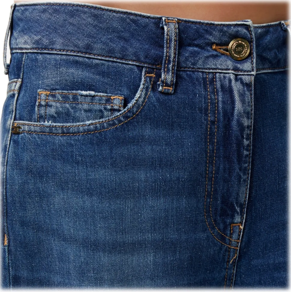 Elisabetta Franchi – Light Canvas Wide Leg Jeans – Blue – Trousers – Made in Italy – Luxury Exclusive Collection