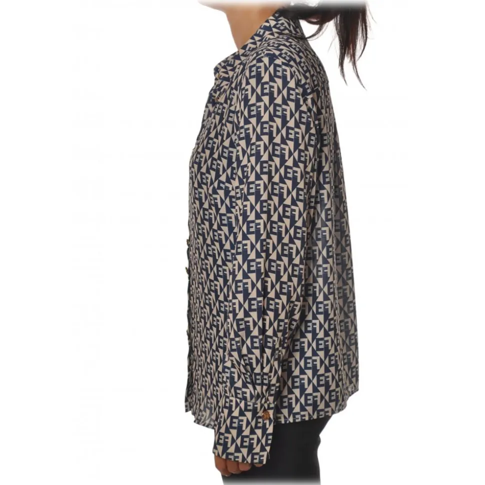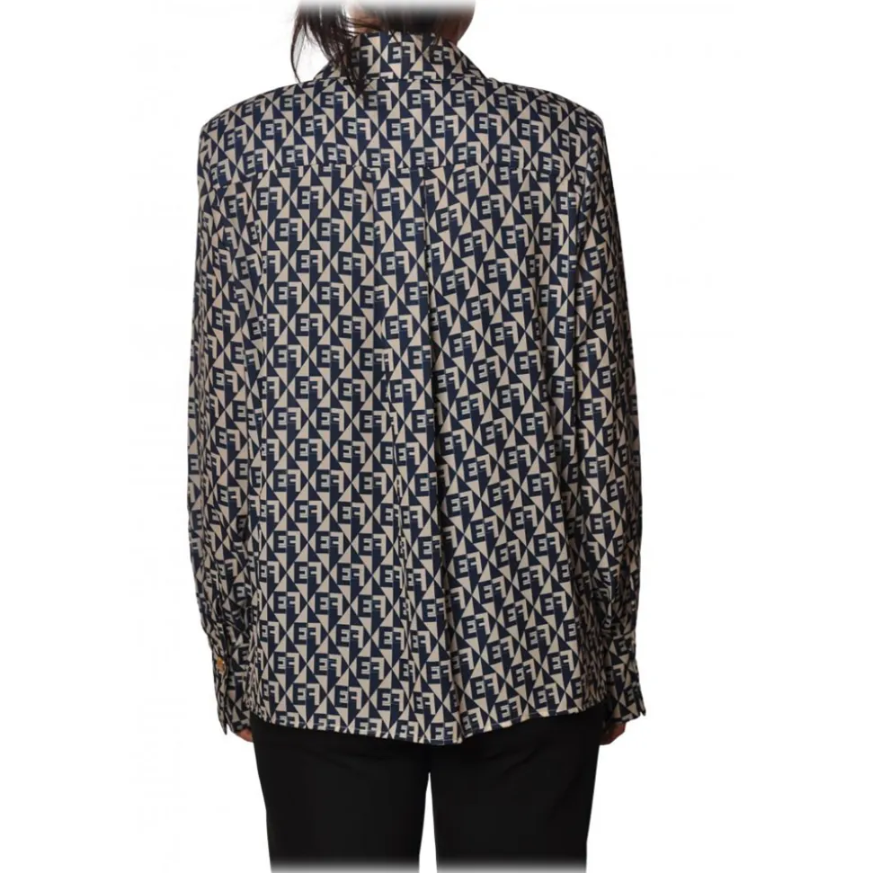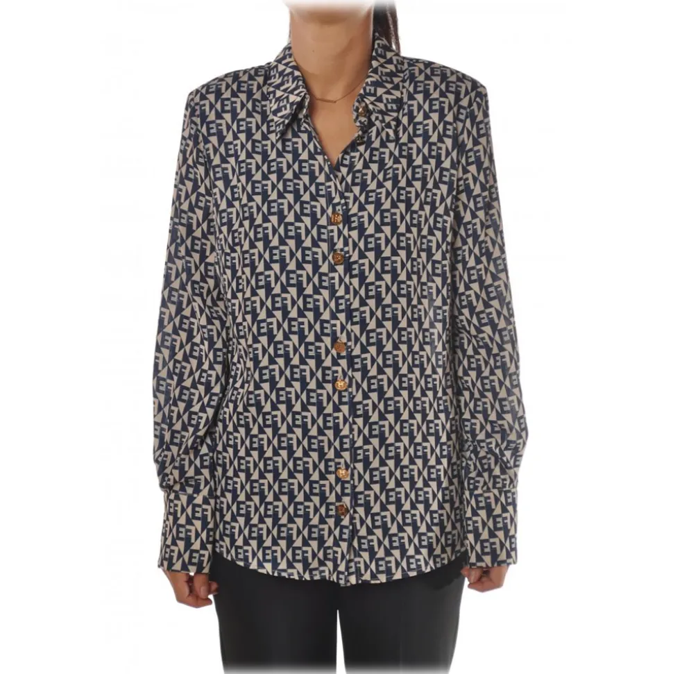 Elisabetta Franchi – Logo Patterned Shirt – White/Blue – Shirt – Made in Italy – Luxury Exclusive Collection