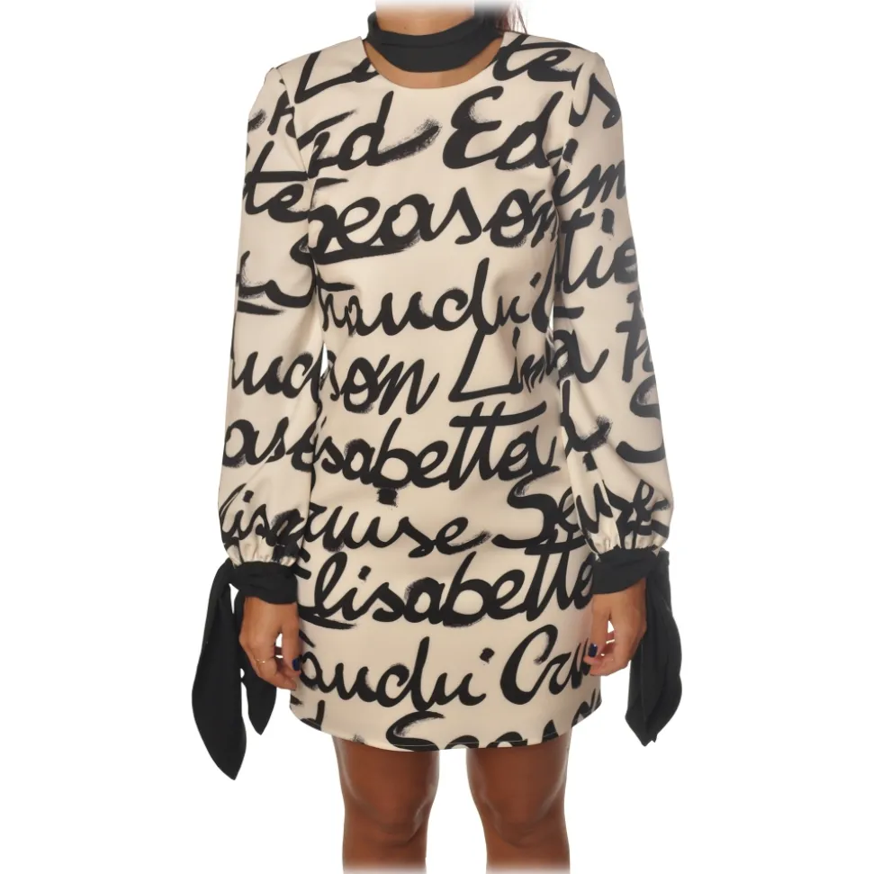 Elisabetta Franchi – Logoed Pattern Dress – Butter/Black – Dress – Made in Italy – Luxury Exclusive Collection