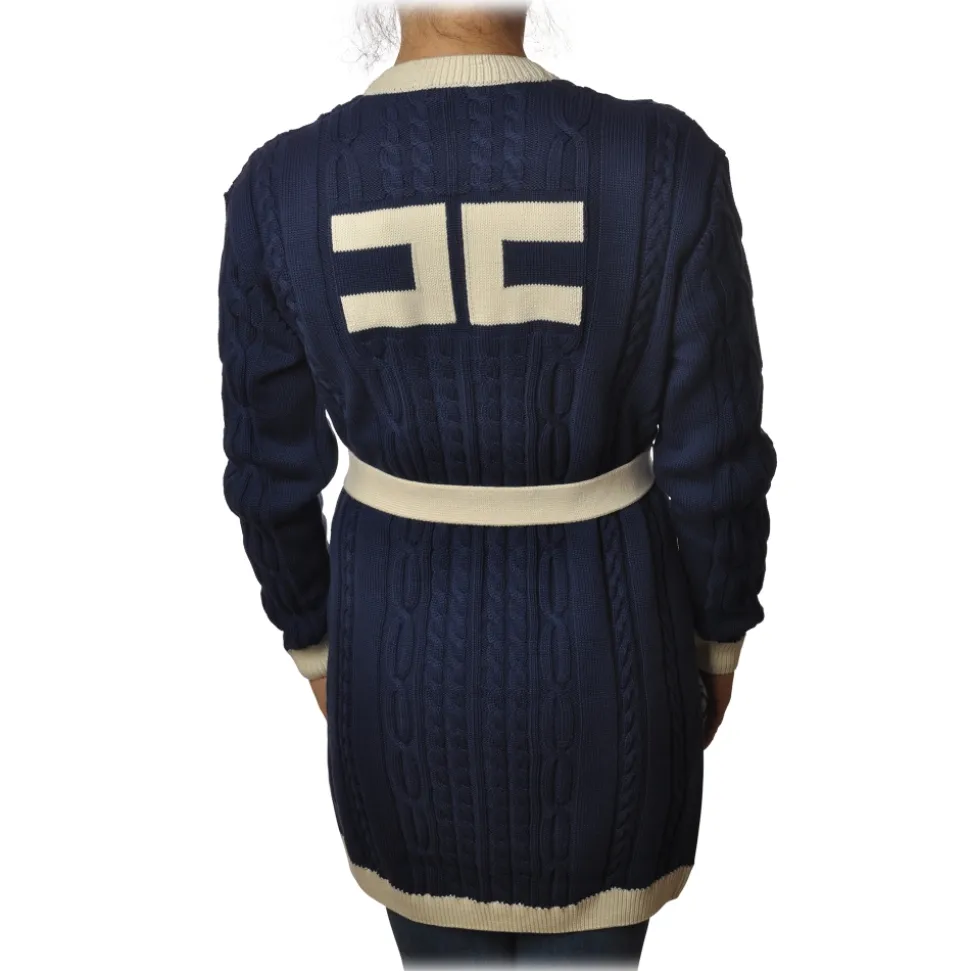 Elisabetta Franchi – Long Cardigan with Belt – Blue Navy – Sweater – Made in Italy – Luxury Exclusive Collection