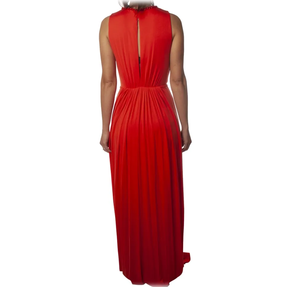 Elisabetta Franchi – Long Dress Chain Detail – Orange – Dress – Made in Italy – Luxury Exclusive Collection