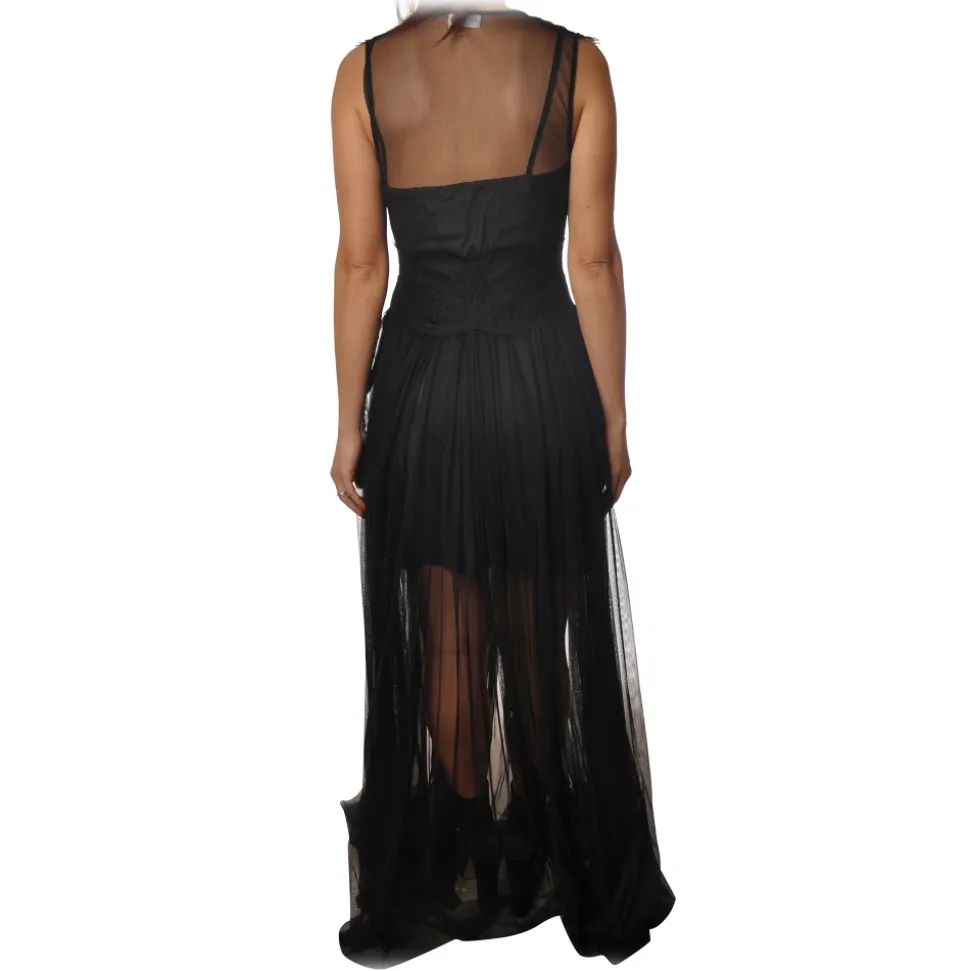 Elisabetta Franchi dress, long model, sleeveless with V-neckline, all in lace, with tulle skirt, with coulotte.