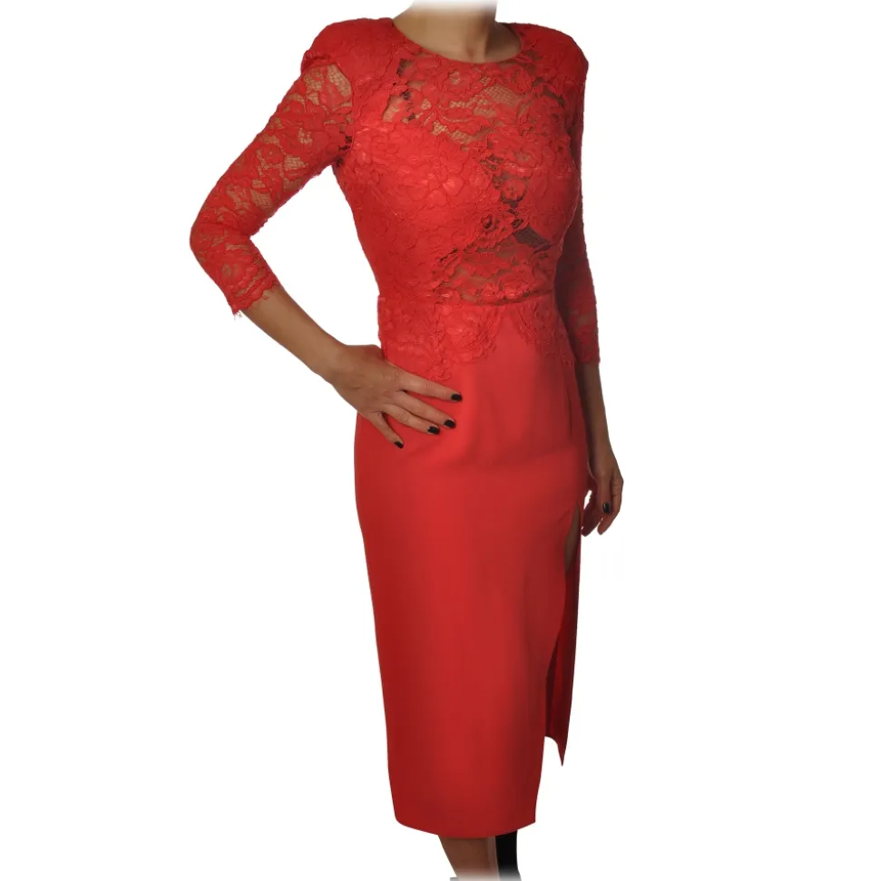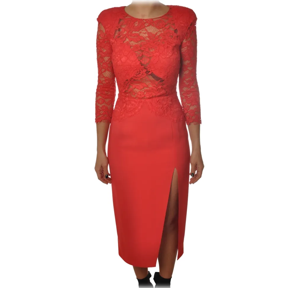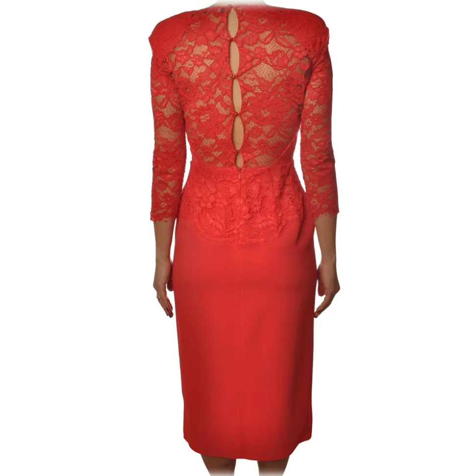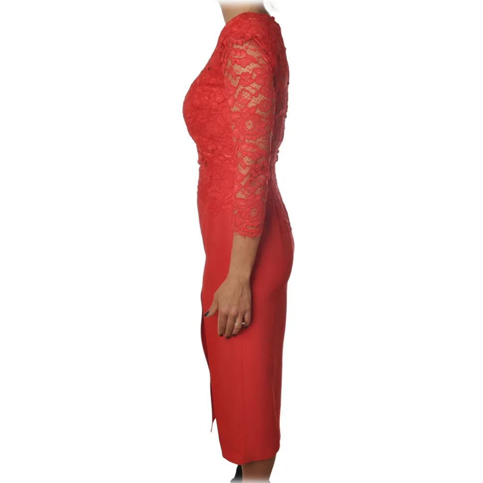 Elisabetta Franchi – Sheath Model Dress in Lace – Ribes Red – Dress – Made in Italy – Luxury Exclusive Collection