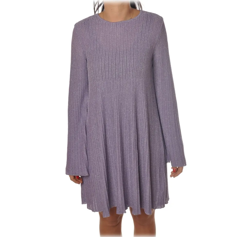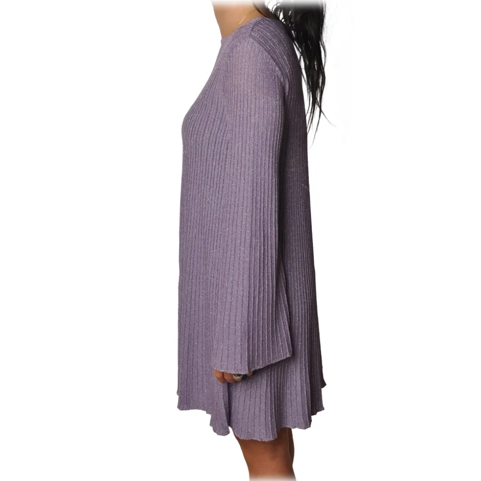 Elisabetta Franchi – Mini Dress in Laminated Knit – Lavender – Dress – Made in Italy – Luxury Exclusive Collection