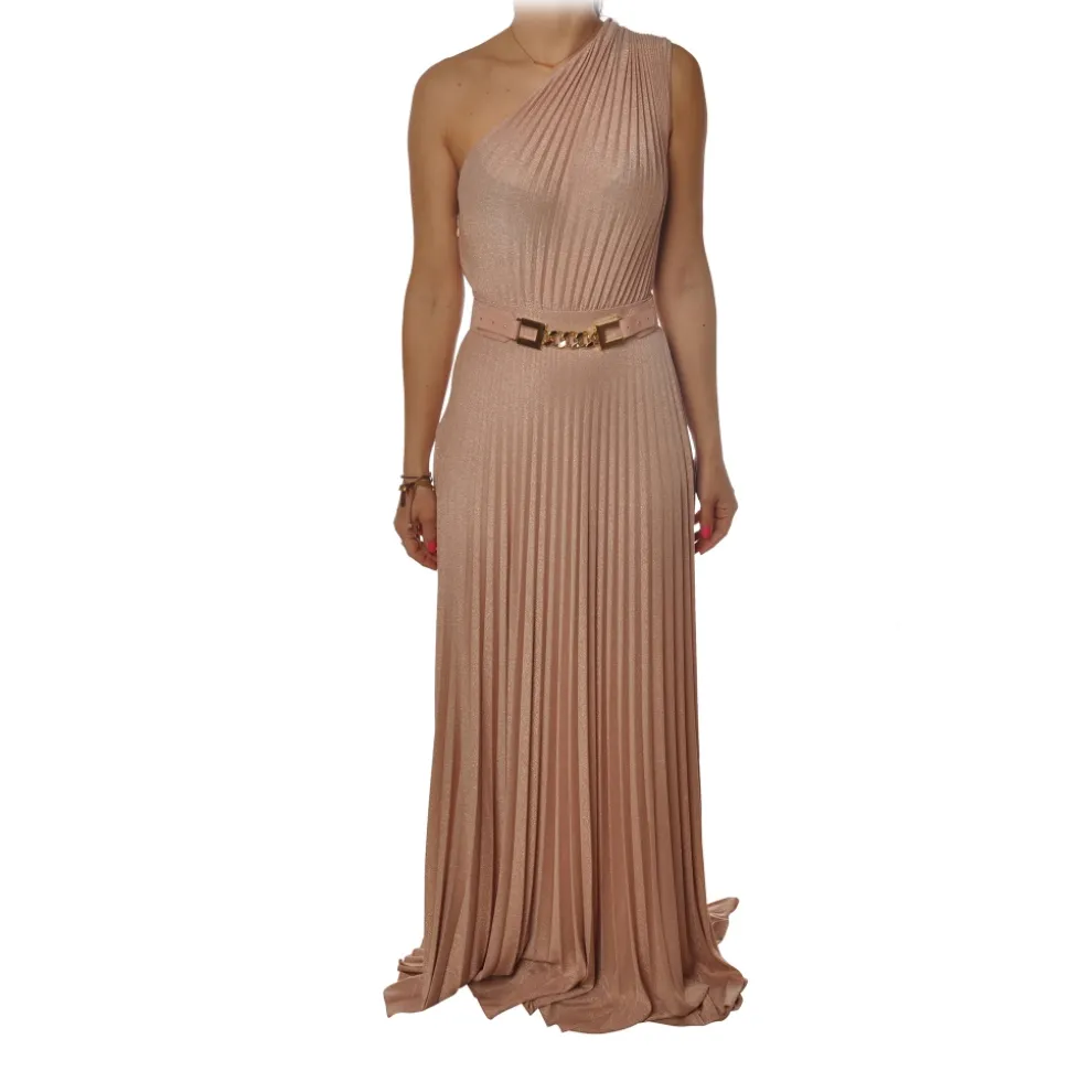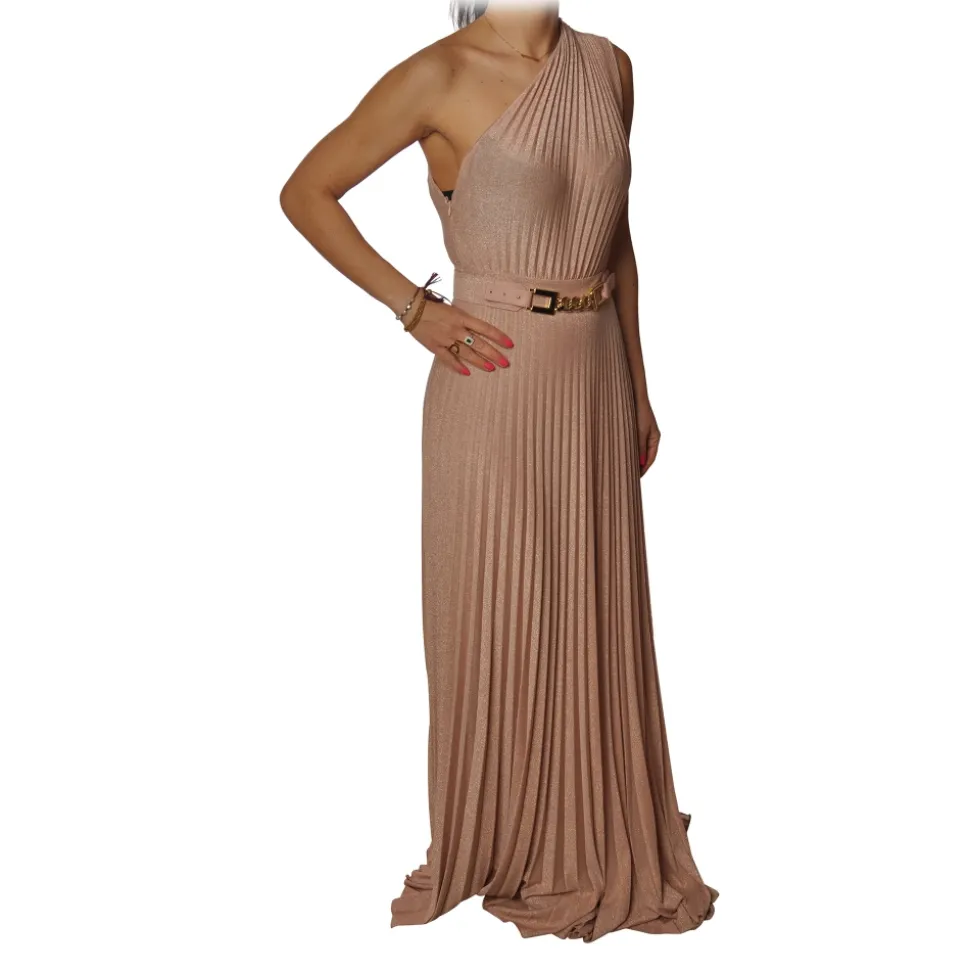 Elisabetta Franchi dress, long one-shoulder model, with matching belt, double slits on the front, in jersey fabric.