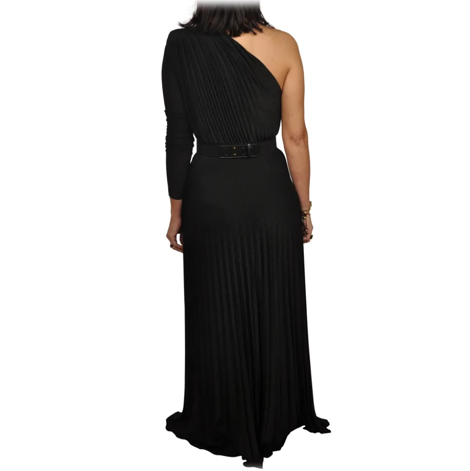 Elisabetta Franchi – One-Shoulder Long Dress with Long Sleeve – Black – Dress – Made in Italy – Luxury Exclusive Collection