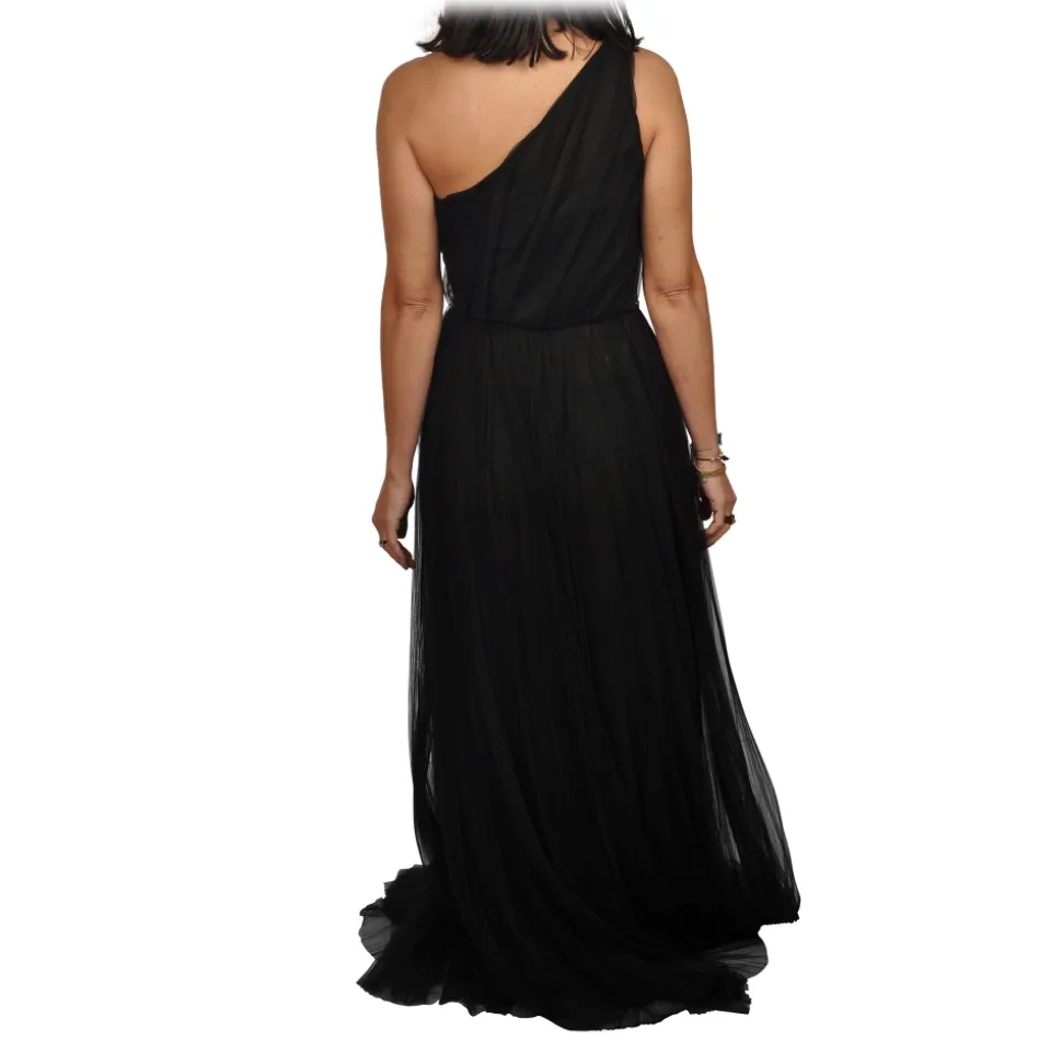 Elisabetta Franchi – One-Shoulder Tulle Long Dress – Black – Dress – Made in Italy – Luxury Exclusive Collection