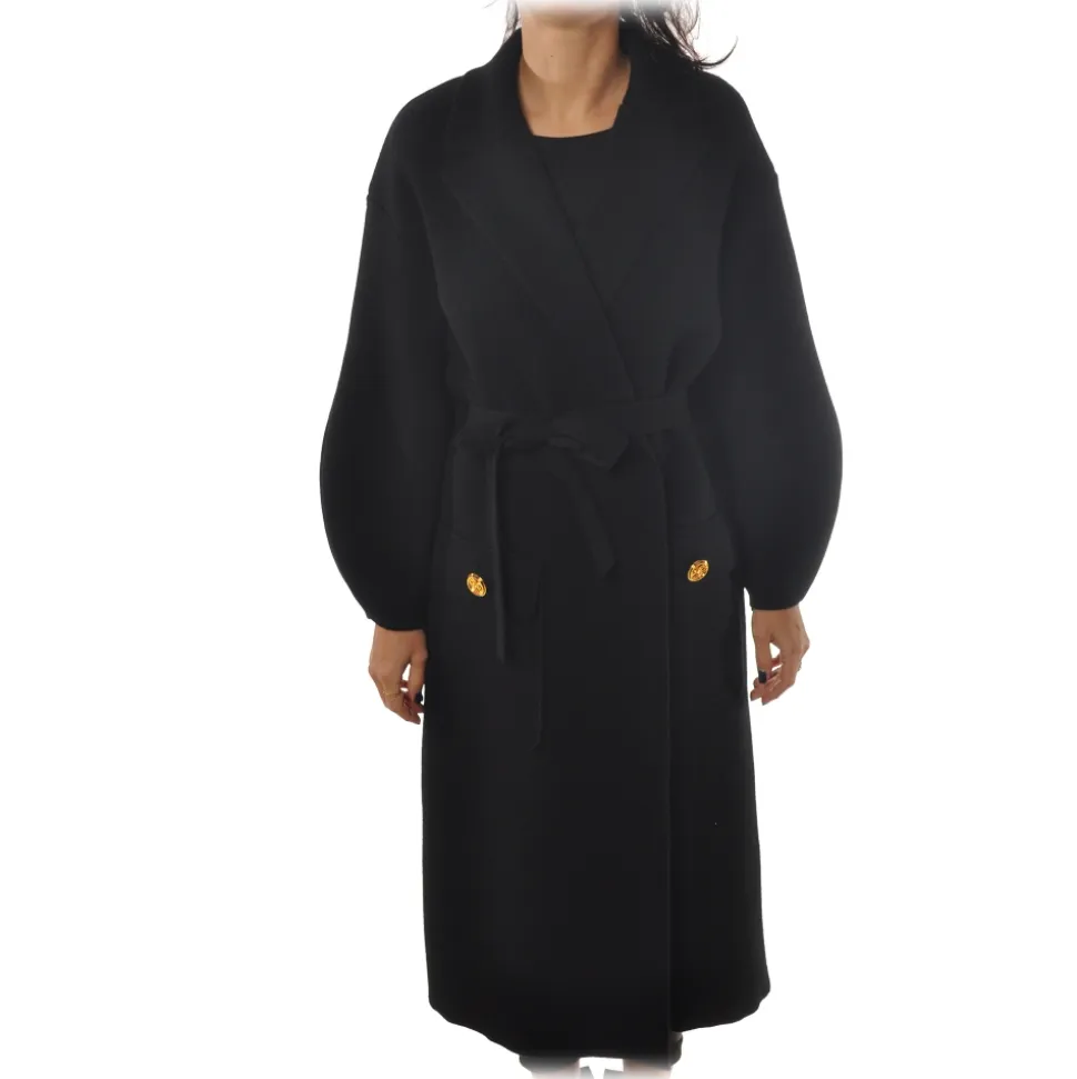 Elisabetta Franchi – Oversize Coat with Two Patch – Black – Jacket – Made in Italy – Luxury Exclusive Collection
