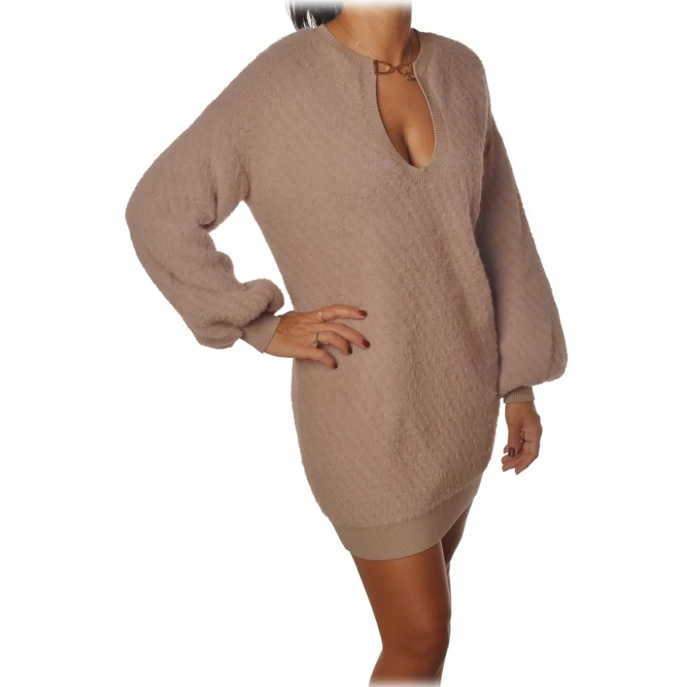 Elisabetta Franchi – Oversized Knit Dress with Gold Detail – Beige – Dress – Made in Italy – Luxury Exclusive Collection