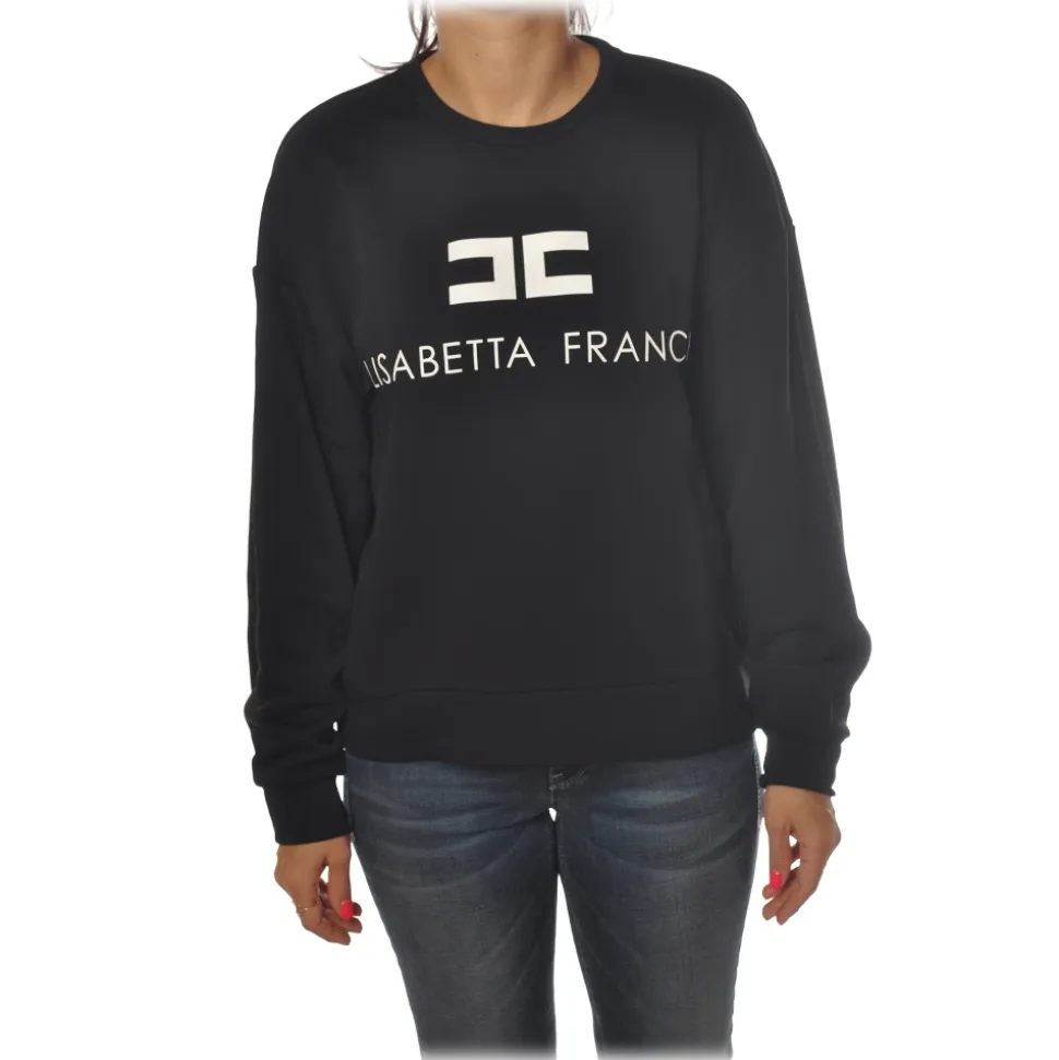 Elisabetta Franchi – Oversized Sweatshirt with Logo – Black – Sweatshirt – Made in Italy – Luxury Exclusive Collection