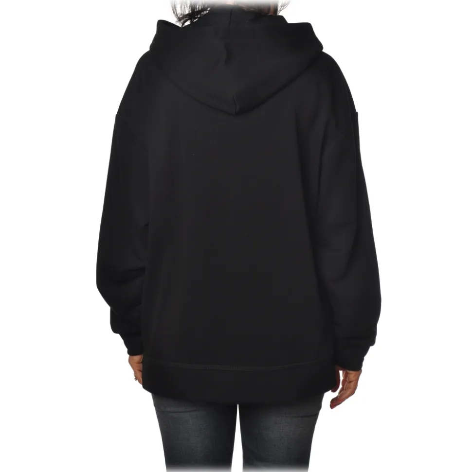 Elisabetta Franchi – Oversized Sweatshirt with Metal Buckles – Black – Sweatshirt – Made in Italy – Luxury Exclusive Collection