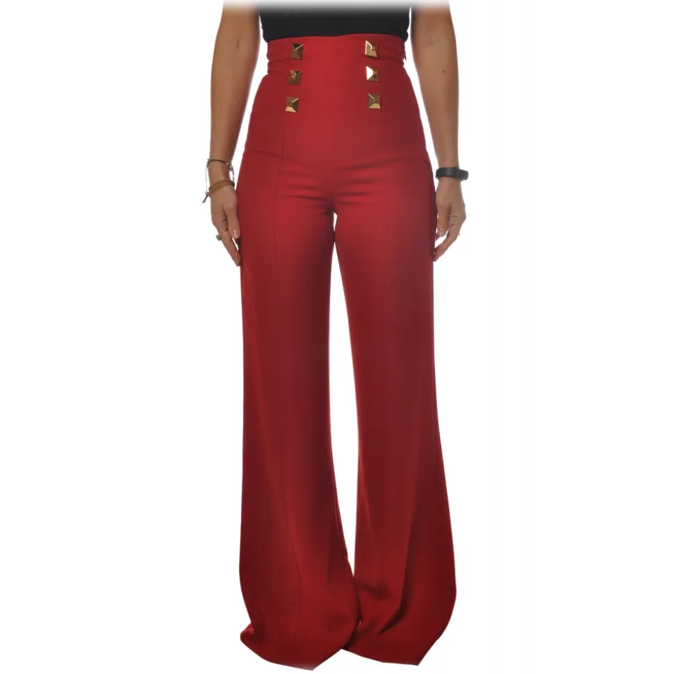 Elisabetta Franchi pants, very high-waisted model with wide leg, in lightweight fabric, with metal stud detail on the front and zipper closure on one side.