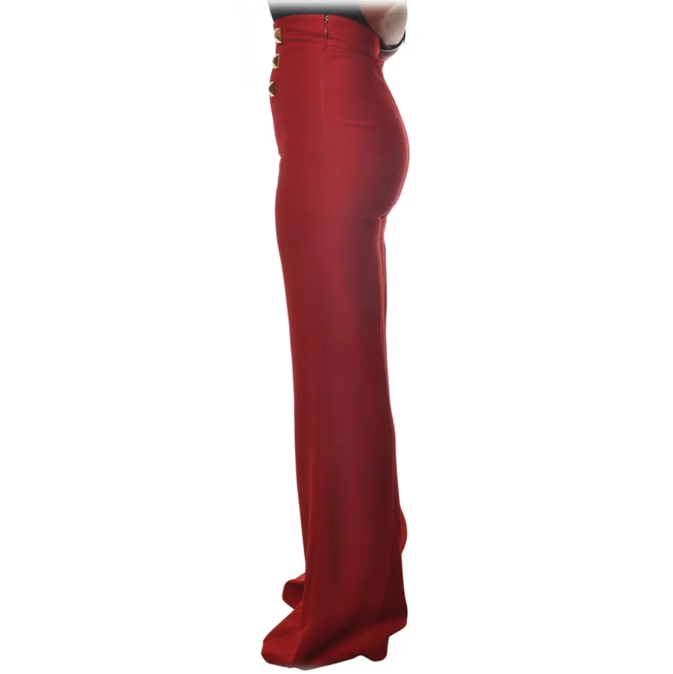 Elisabetta Franchi – Pants with Stud Detail – Bordeaux – Trousers – Made in Italy – Luxury Exclusive Collection