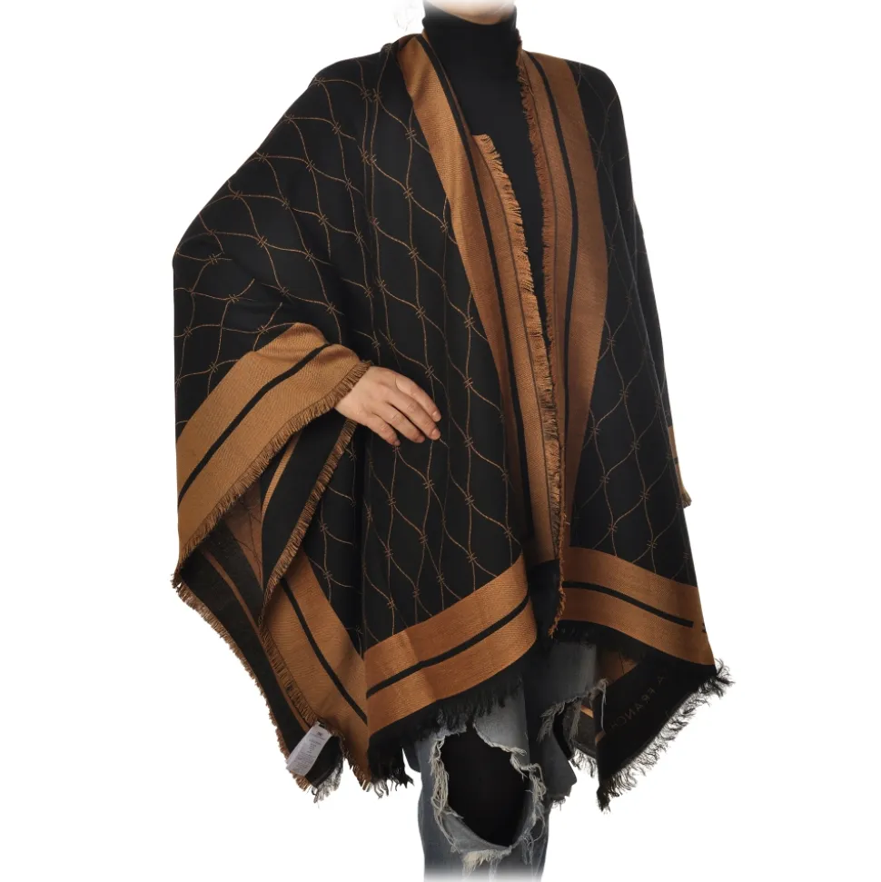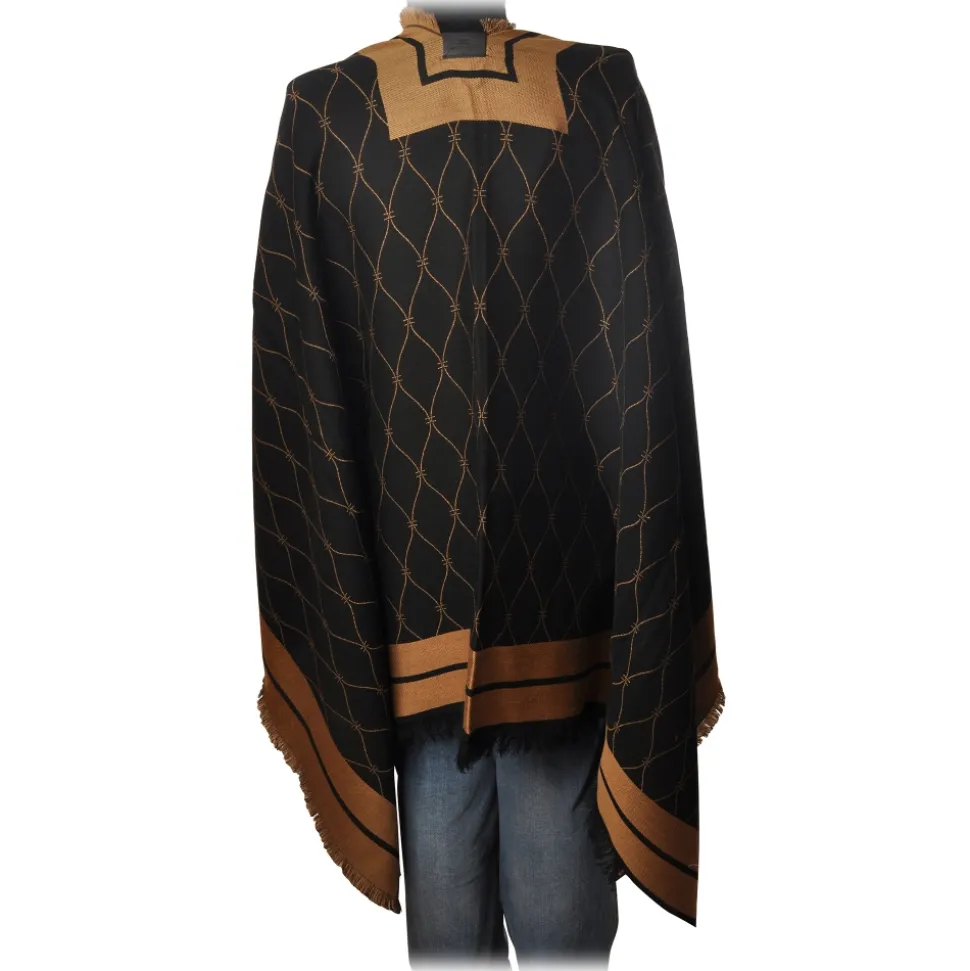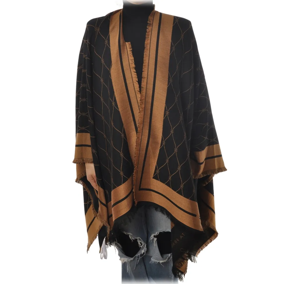 Elisabetta Franchi – PatternĀ Cape – Black/Mou –Ā Scarf – Made in Italy – Luxury Exclusive Collection