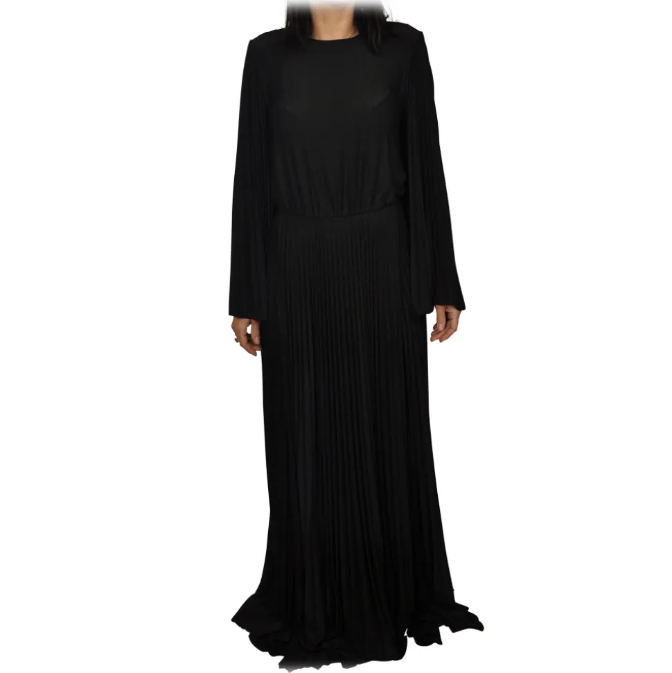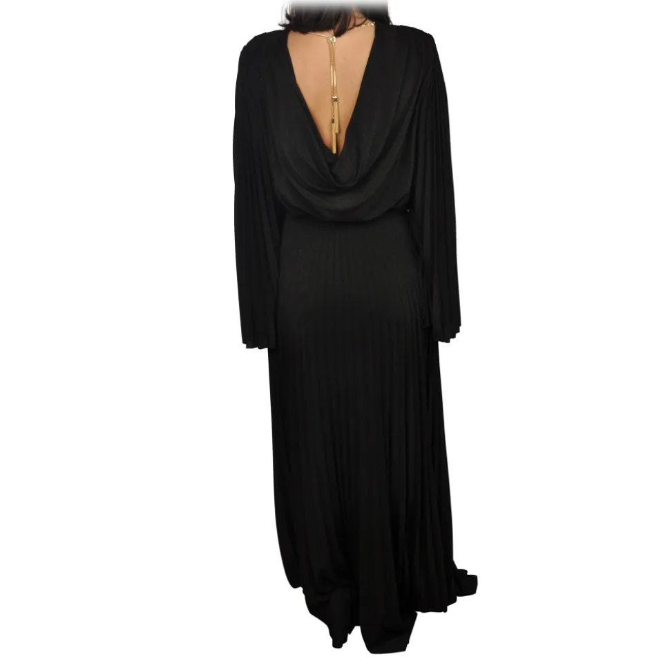 Elisabetta Franchi – Pleated Lurex Fabric Dress – Black – Dress – Made in Italy – Luxury Exclusive Collection