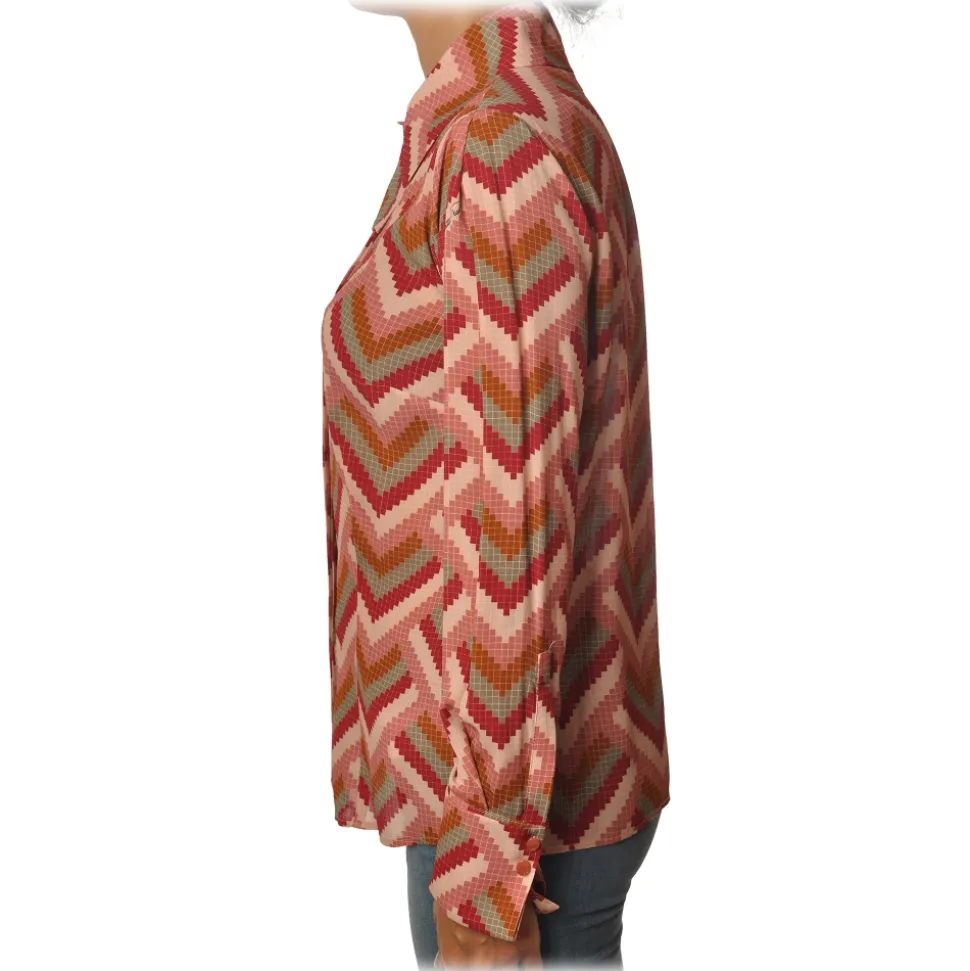 Elisabetta Franchi – Shirt in Geometric Pattern – Red/Pink – Shirt – Made in Italy – Luxury Exclusive Collection