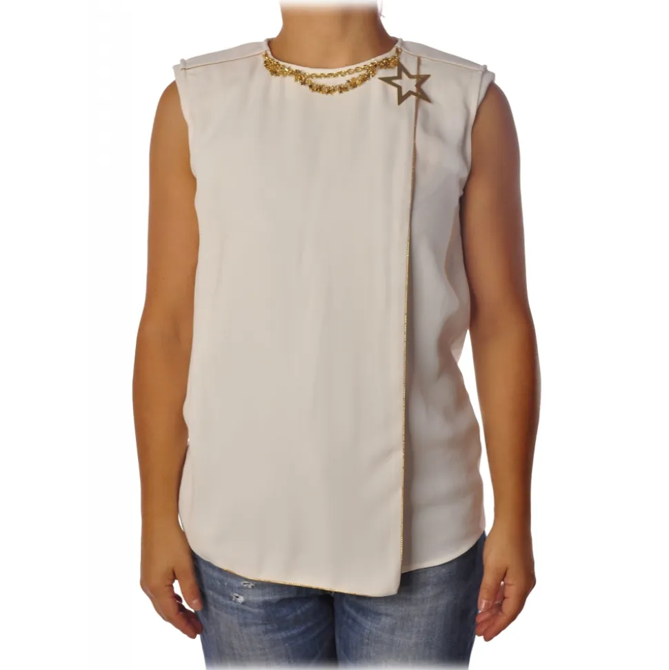 Elisabetta Franchi shirt, soft model without buttoning, sleeveless crew neck, with removable star necklace accessory.