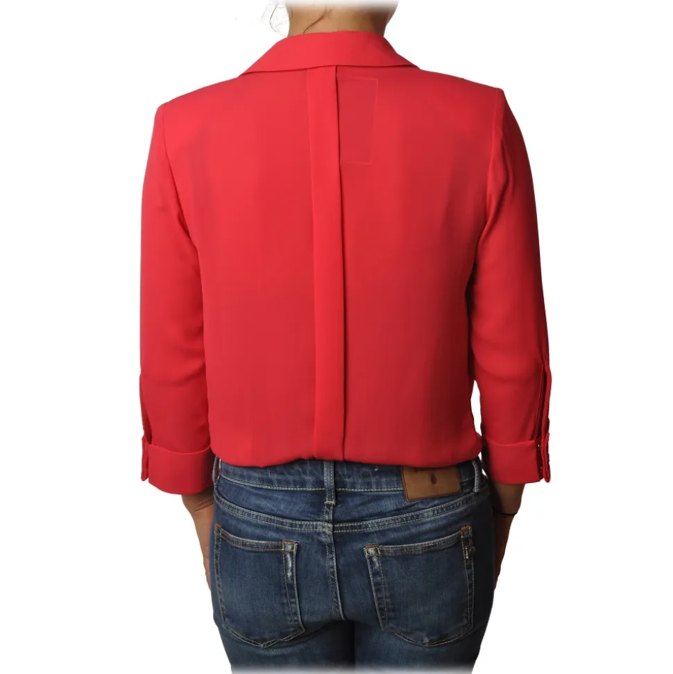 Elisabetta Franchi – Shirt with Wide V-Neckline – Red – Shirt – Made in Italy – Luxury Exclusive Collection