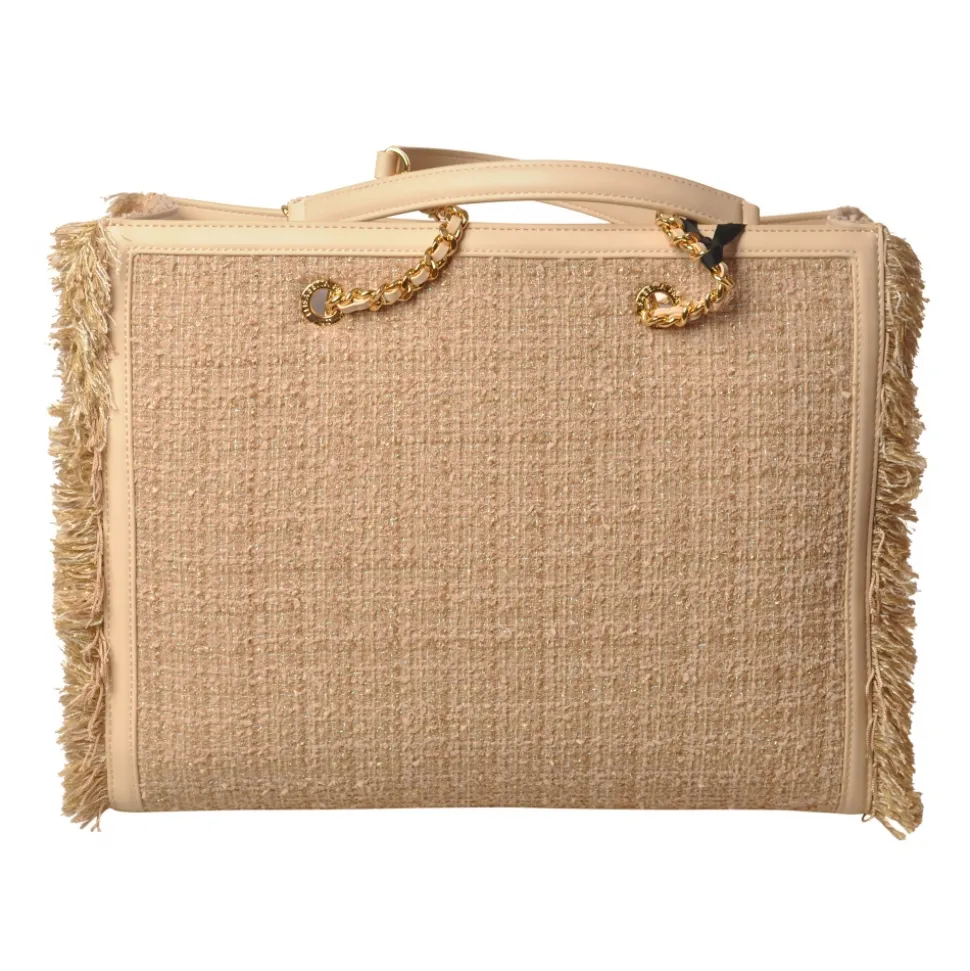 Elisabetta Franchi – Shopper Bag with ChainĀ in FabricĀ – Champagne – Bag – Made in Italy – Luxury Exclusive CollectionĀ