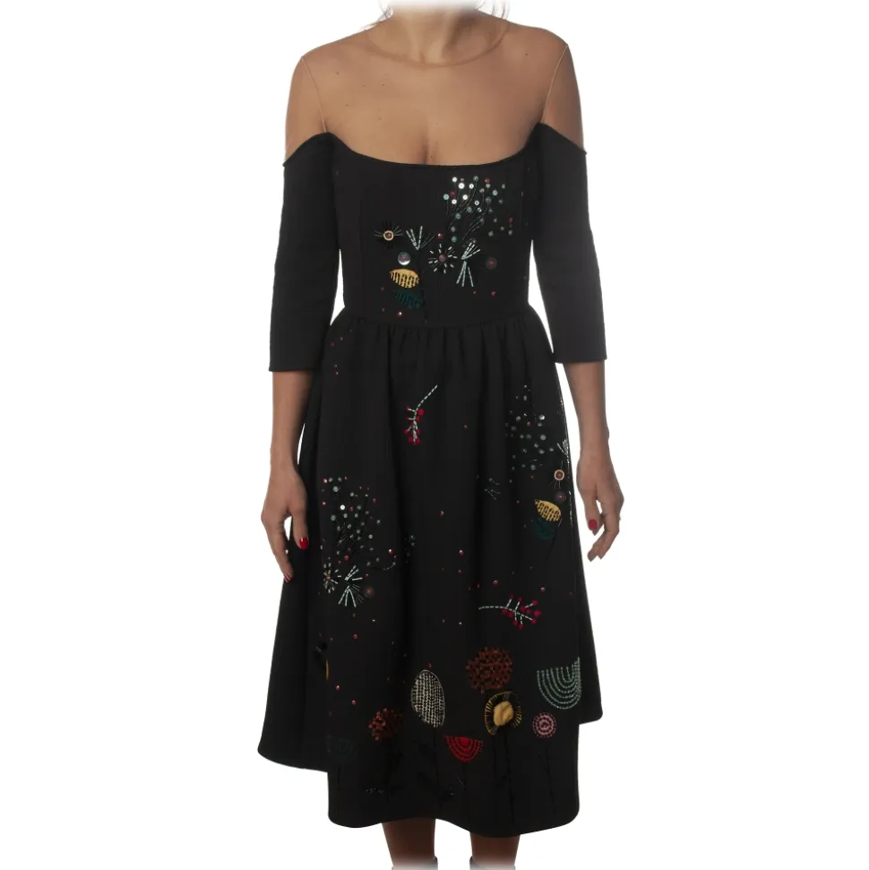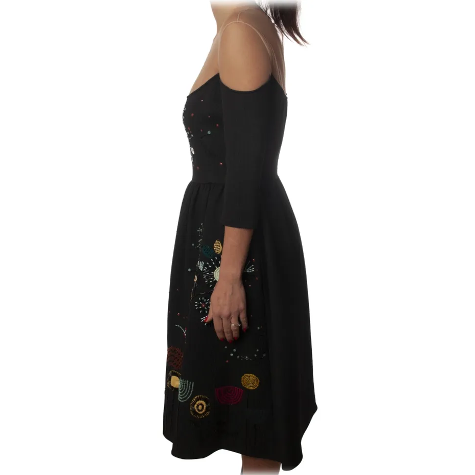 Elisabetta Franchi – Short Embroidered Dress – Black – Dress – Made in Italy – Luxury Exclusive Collection