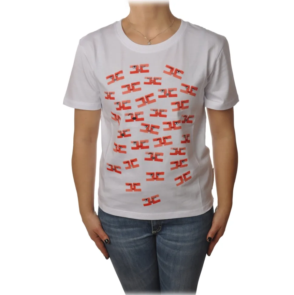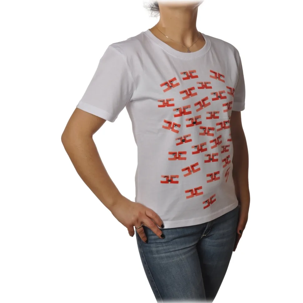 Elisabetta Franchi – Short Sleeve Round Neck T-Shirt Logo – White – T-Shirt – Made in Italy – Luxury Exclusive Collection