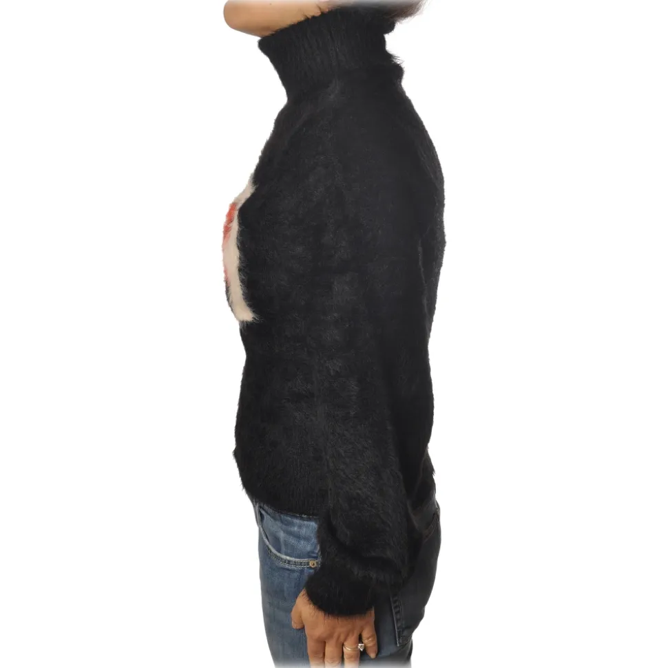 Elisabetta Franchi – Short Long Sleeve Sweater High Collar – Black Lacquer – Sweater – Made in Italy – Luxury Exclusive Collection