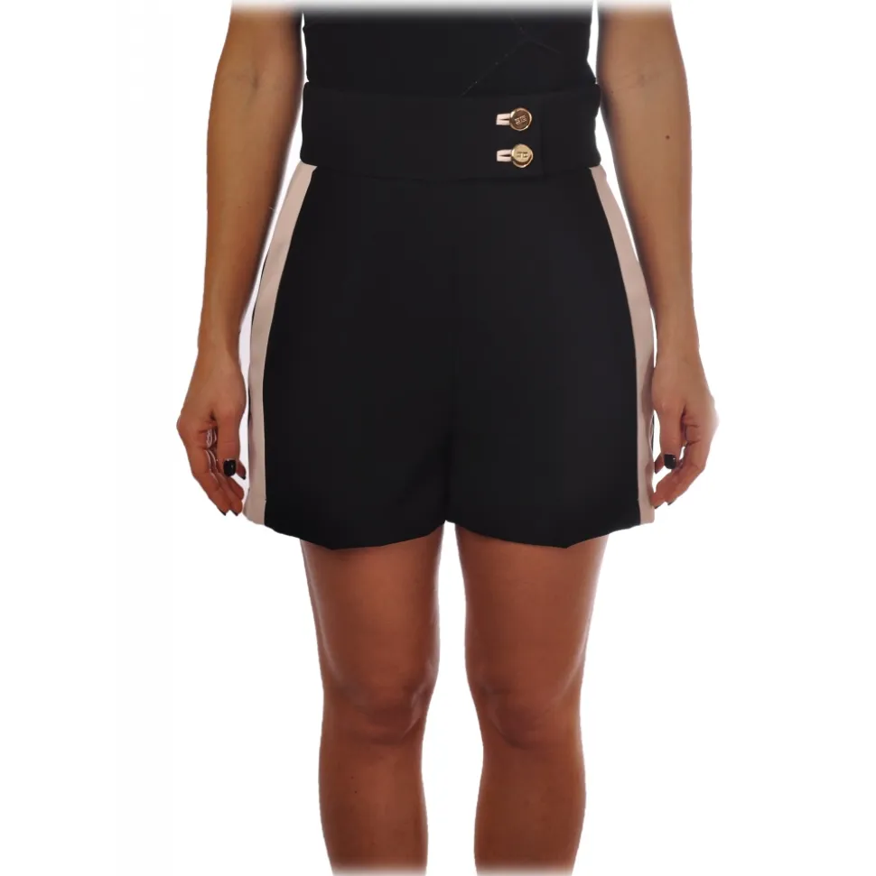 Elisabetta Franchi – Shorts with Band in Contrast – Black – Trousers – Made in Italy – Luxury Exclusive Collection