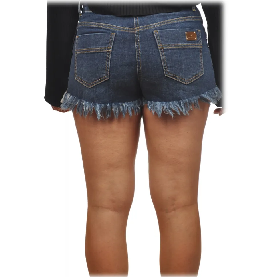 Elisabetta Franchi – Shorts with Gold Chain Detail – Blue – Trousers – Made in Italy – Luxury Exclusive Collection
