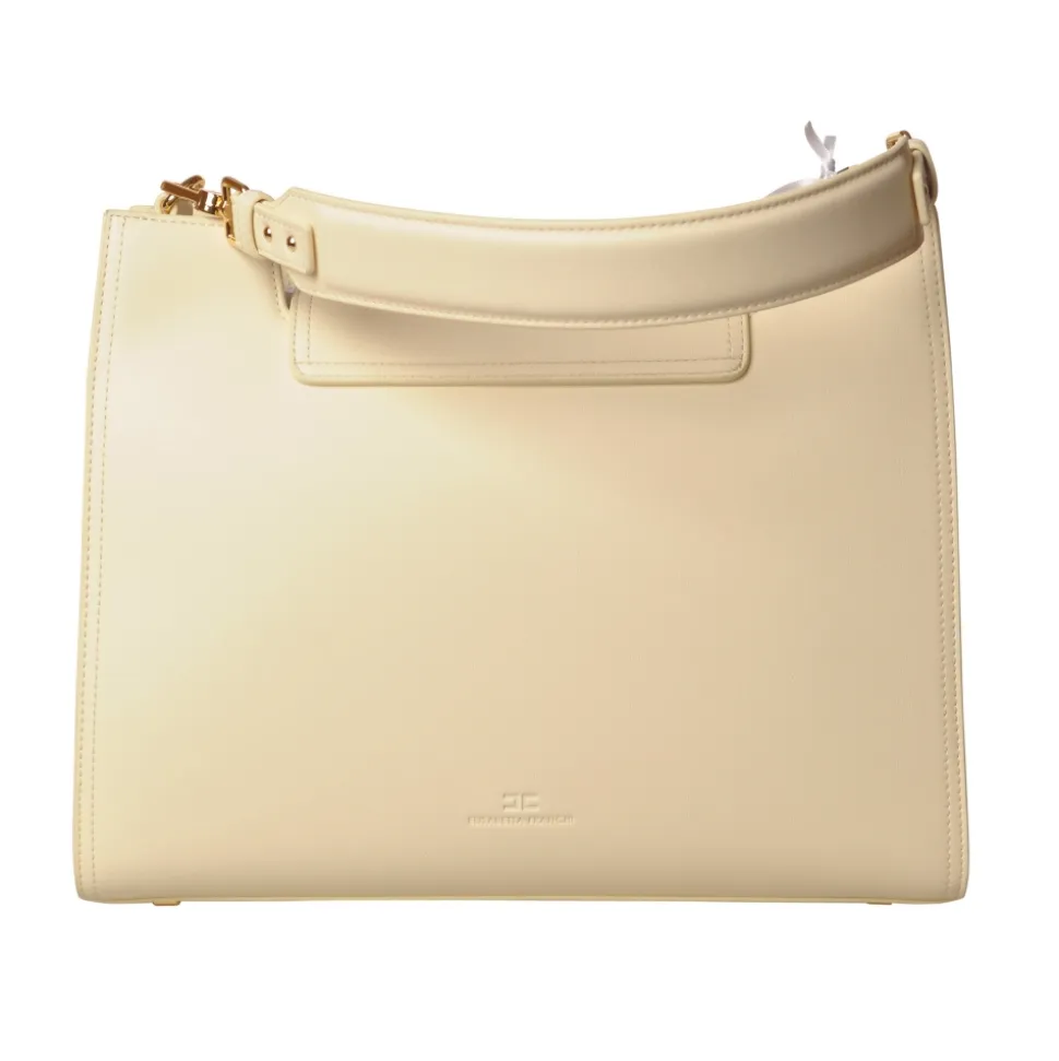 Elisabetta Franchi – Shoulder Bag in Eco-Leather with Gold LogoĀ – Butter – Bag – Made in Italy – Luxury Exclusive CollectionĀ