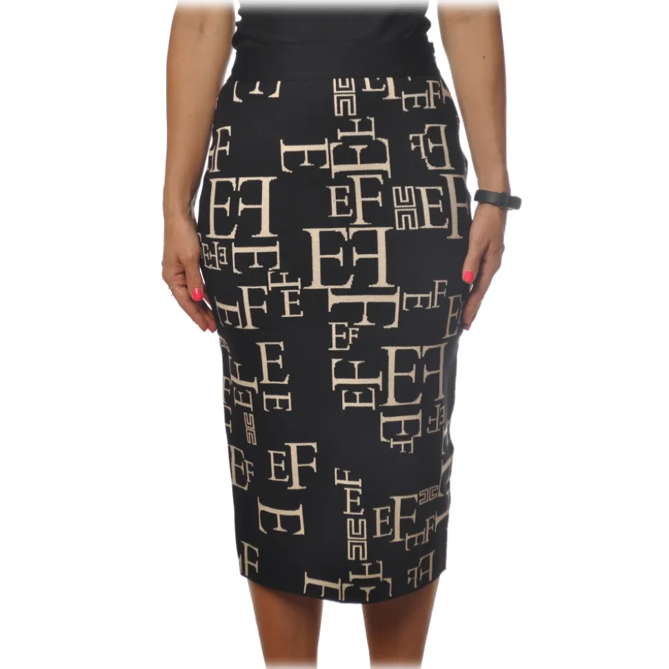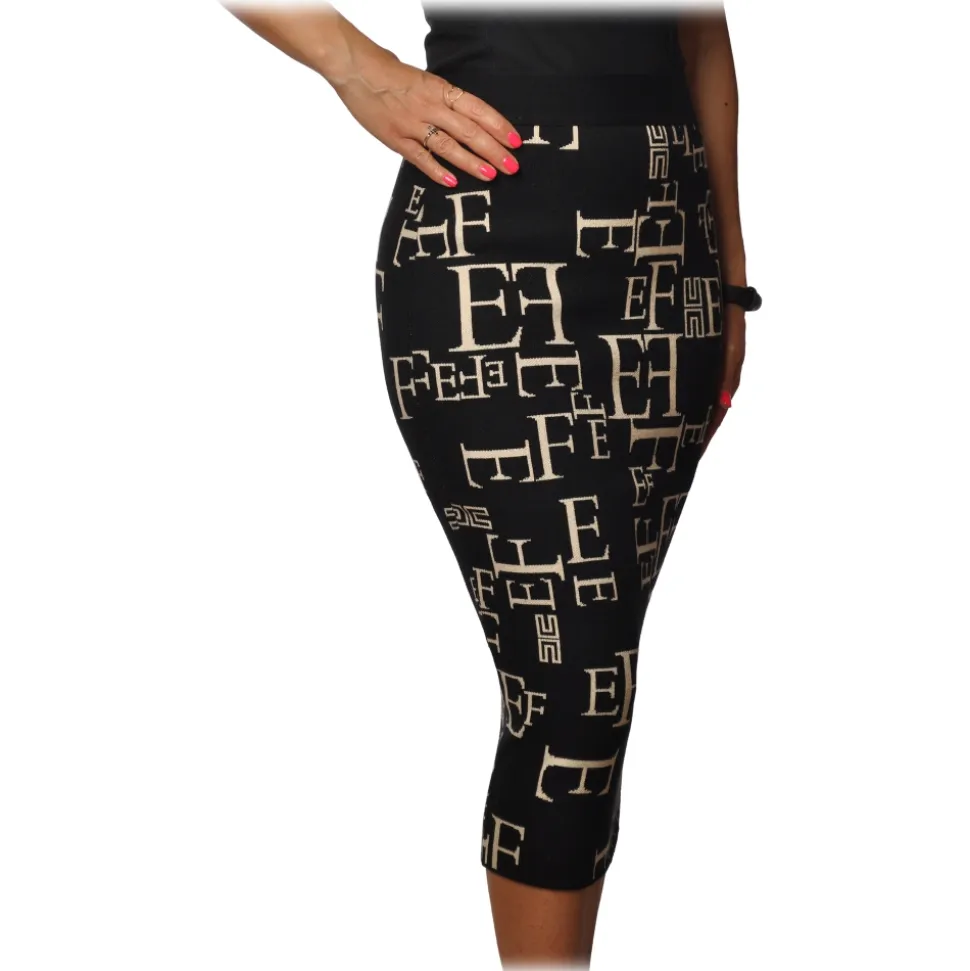 Elisabetta Franchi – Skirt in Logo Fantasy – Black/White – Skirt – Made in Italy – Luxury Exclusive Collection